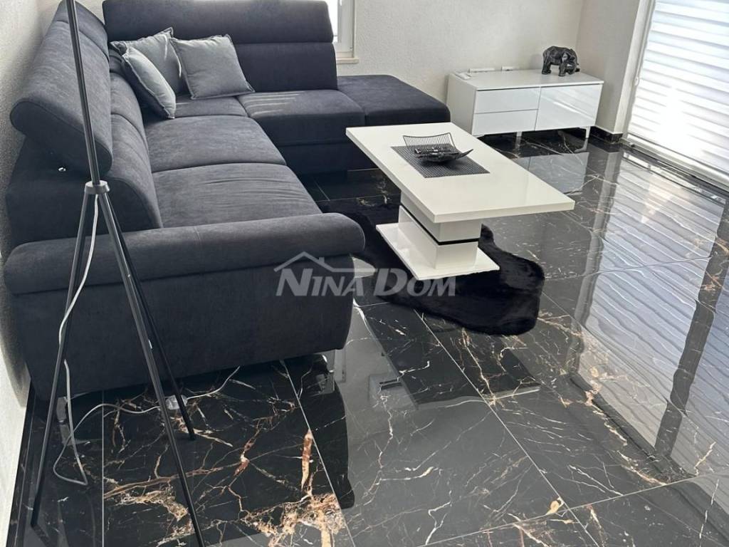 The apartment is located in the immediate vicinity of the beach with a beautiful sea view, It is located on the second floor of the building, consists of two bedrooms, a kitchen with a dining room and a living room, a bathroom, and a balcony. The apartment also has a basement room of 9 m2, two parking spaces in the courtyard of the building. The apartment is fully equipped, air-conditioned.