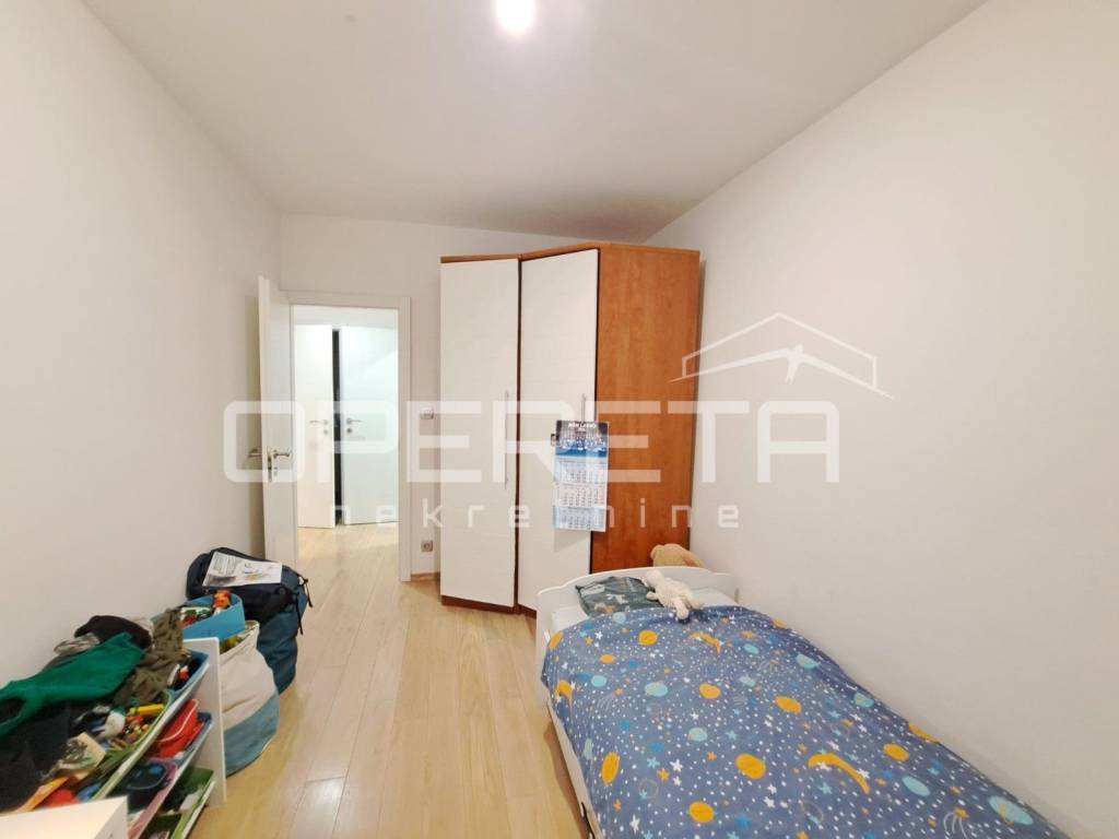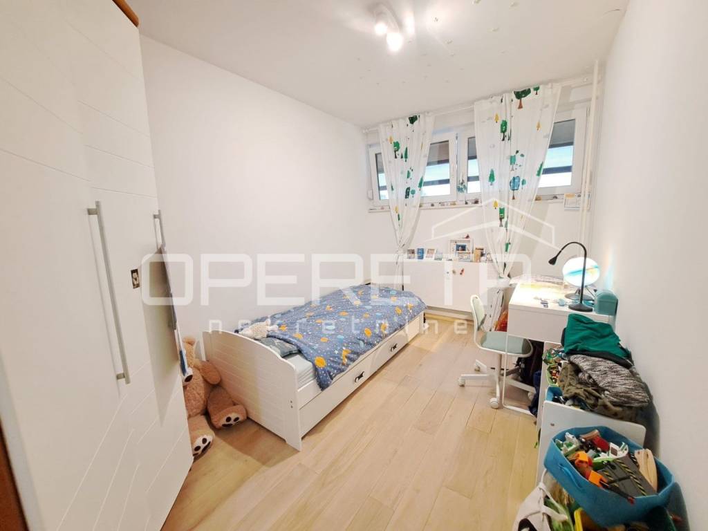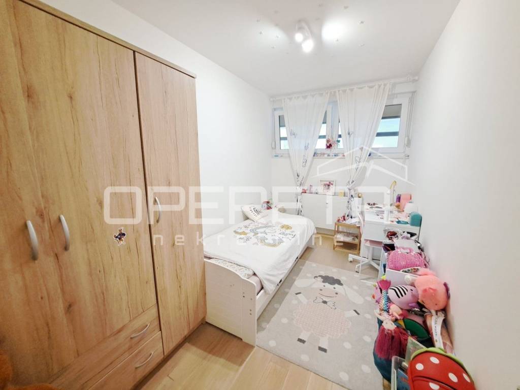 Prodaje se predivan, potpuno namješten i novouređen stan na 7. katu zgrade sa liftom. Stan je 2018 godine kompletno renoviran sa svim instalacijama, a sastoji se od 3 spavaće sobe, 2 wc-a, otvorenog, prostranog dnevnog boravka i blagovaonice, kuhinje i ulaznog prostora. Ispred stana je video nadzor, a lokacija je izuzetno dobra obzirom na blizinu svih potrebnih sadržaja, javnog prijevoza, škole i ostalog. Postoji opcija kupnje garažnog parkirnog mjesta u zgradi na prizemnoj etaži koje trenutno služi kao prostor za odlaganje i parking za manji auto (VW UP).