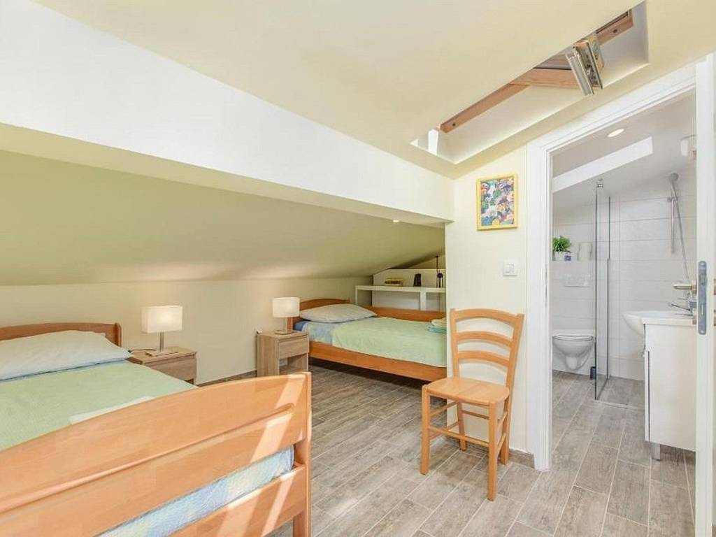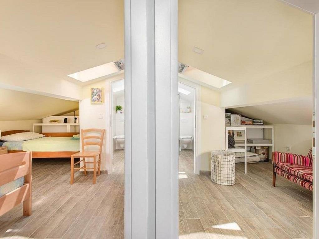 In the quiet surroundings of Malinska there is a fully furnished duplex apartment in a prime location, with an open sea view. On the first floor there is a kitchen with a dining room, a living room that opens onto a spacious terrace, two bedrooms, a hallway and a bathroom. An internal staircase leads to the attic where there are two more bedrooms, two bathrooms and a balcony, creating the impression of an airy and functional space. The apartment is just a few minutes walk from the sea, and two terraces that allow you to enjoy the outdoors contribute to a pleasant stay during the warmer months. Additional practicality is provided by a storage room in the basement, as well as an accompanying garden that completes the entire offer of this property.
