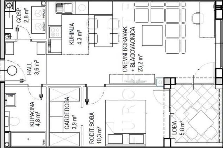Čakovec, Globetka, dvosoban stan površine 58,70 m2, u izgradnji na odličnoj lokaciji nadomak centra grada.Stan je precizno projektiran s odličnim rasporedom prostorija. Sastoji se od ulaznog hodnika, kuhinje, dnevnog boravka s blagovaonicom, spavaće sobe s garderobom, kupaonice s wc-om, vešeraja i loggie.Grijanje u stanu će biti etažno plinsko, a u kupaonici i podno grijanje. Stan će biti opremljen i klima uređajem.U cijenu je uključeno i jedno nenatkriveno parkirno mjesto, a spremište i garažno parkirno mjesto dostupni su uz nadoplatu.Stan se nalazi na odličnoj lokaciji koja ima sve uvjete za miran i kvalitetan život. U neposrednoj blizini nalaze se SRC Mladost, gradski bazeni, dječji vrtić, osnovna škola, srednja škola, restorani i trgovine.Moguća je manja korekcija cijene.Dovršetak izgradnje planiran je za siječanj 2026. godine.Za sve dodatne informacije, stojimo Vam na raspolaganju.
