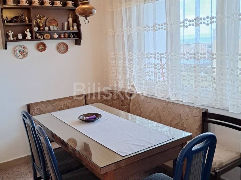 It consists of a kitchen with a dining room, a separate living room, a utility room, two bedrooms, a bathroom and a loggia with a view of the city and the sea.