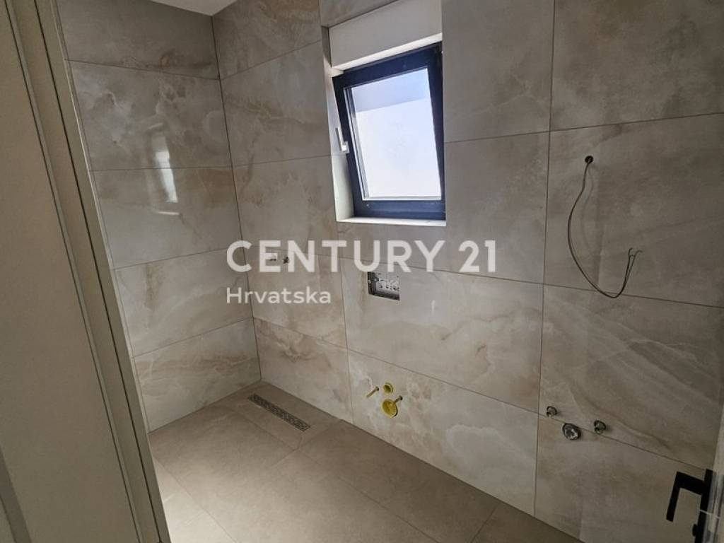 Apartman je opremljen visokokvalitetnim materijalima: ALU stolarija, električne rolete, komarnici, Hans Grohe sanitarije, Geberit sustavi, troslojni parket u spavaćim sobama te vrhunske keramičke pločice u dnevnom dijelu, kuhinji, hodnicima i kupaonici.