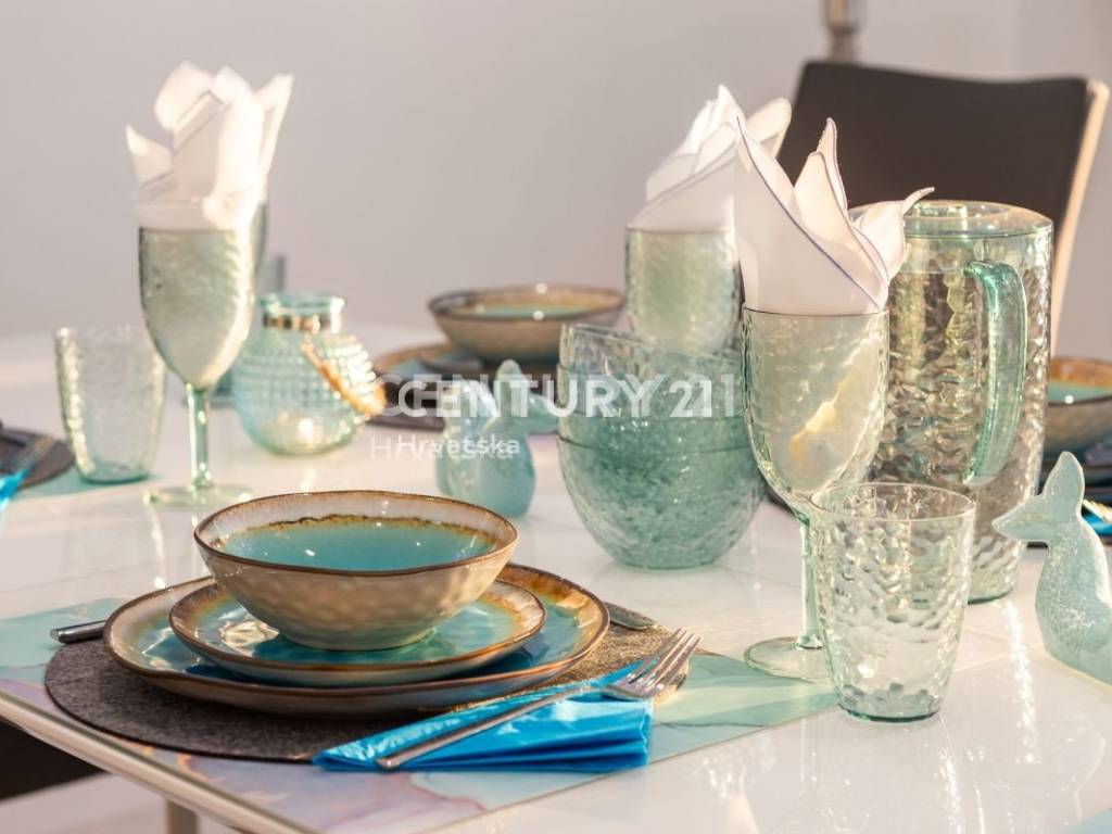S terase se ulazi u dnevni dio otvorenog koncepta. Sastoji se od dnevnog boravka i potpuno opremljene kuhinje. Ovaj je prostor idealan ako se tijekom dana želite skloniti od iscrpljujuće vrućine. Dnevni boravak ima dva udobna dvosjeda te mali bar u kojem si možete pripremiti piće i uživati u omiljenoj TV emisiji ili slušati omiljenu glazbu na kućnom Marantz prijemniku.