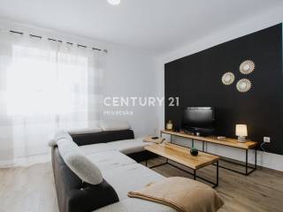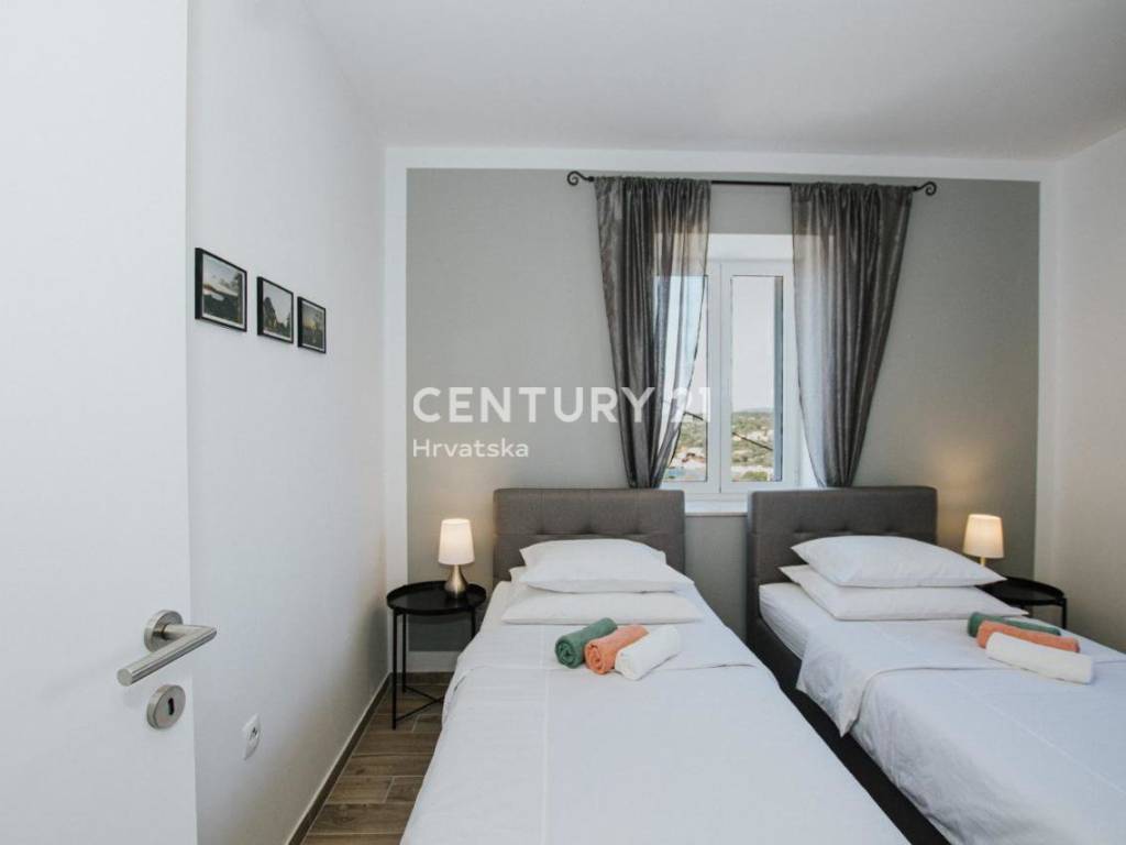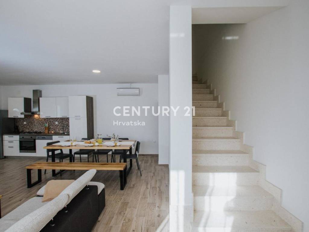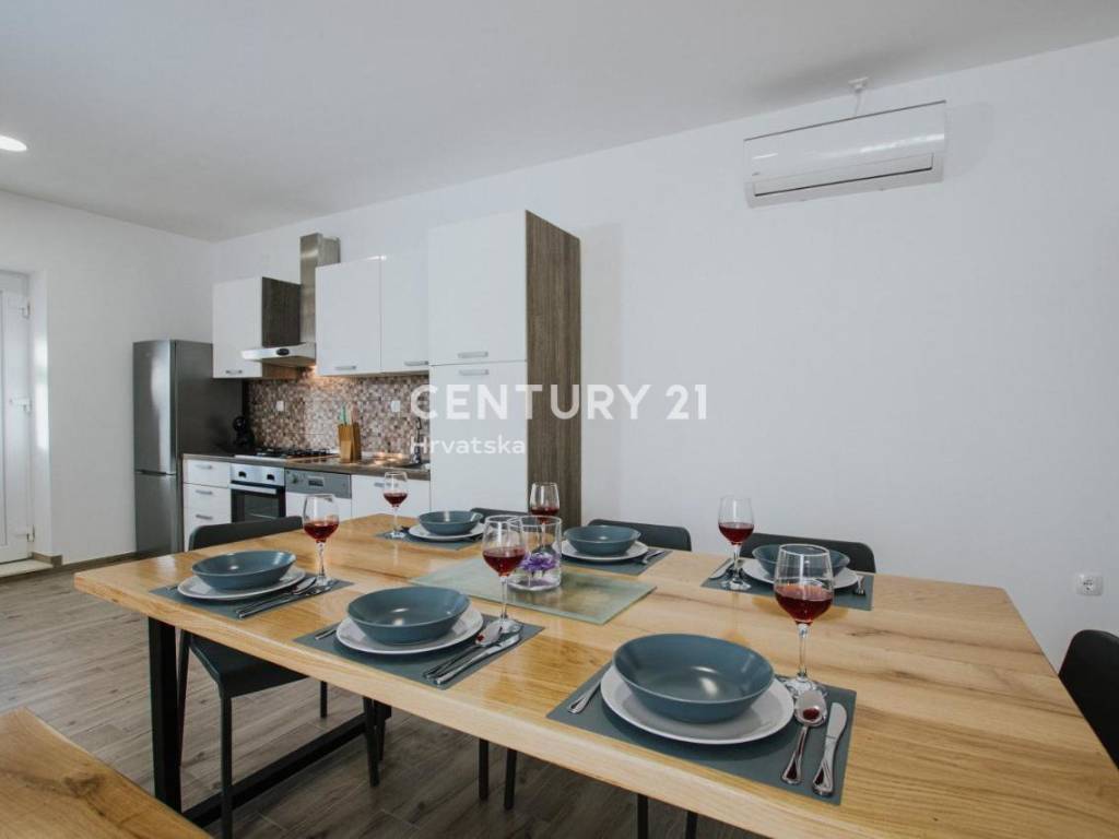 Kuća se sastoji od dvije etaže; na prvoj etaži su prostrani dnevni boravak i opremljena kuhinja s kupaonicom, a na drugoj etaži su tri spavaće sobe i kupaonica. Ispred kuće se nalazi veliko dvorište za opuštanje na suncu,a ima i dovoljno okućnice za uživanje. Postoji mogućnost vrtlarenja, sadnje mediteranskih biljki ili izgradnje bazena.