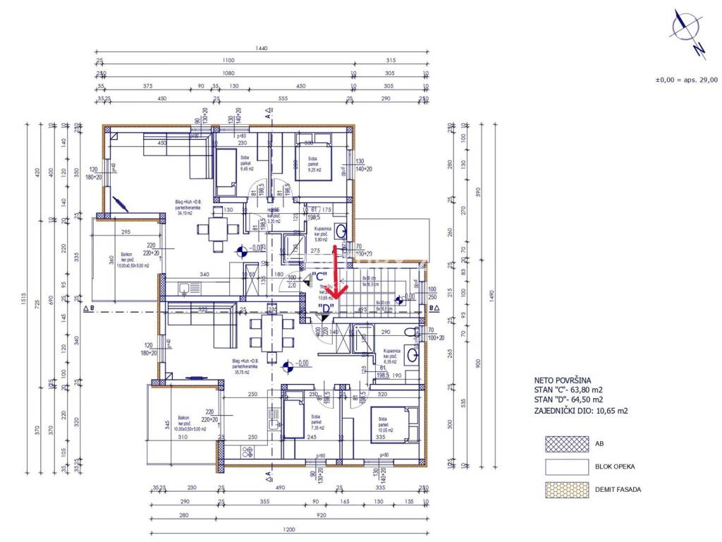 We are mediating the sale of a two-bedroom apartment on the ground floor, located in a quiet area in Brodarica, only 490 meters by road from the sea and the Španja Roka coast. This apartment (internal designation apartment D) is situated on the first floor of a small building under construction with a total of four residential units – two on the ground floor and two on the first floor – all units have a sea view, with an approximate distance of 280 meters as the crow flies.