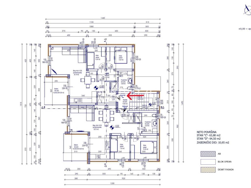 We are mediating the sale of a two-bedroom apartment on the ground floor, located in a quiet area of Brodarica, just 490 meters by road from the sea and the Španja Roka coast. This apartment (internal designation apartment C) is situated on the first floor of a small building under construction with a total of four residential units – two on the ground floor and two on the first floor – all units have a sea view, with an approximate straight-line distance of 280 meters from the sea.