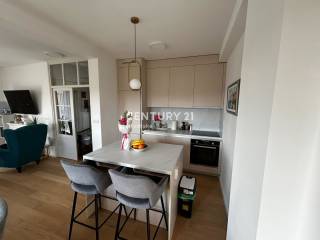 It has a loggia with a partial sea view and two outdoor parking spaces. It is sold furnished and equipped, ready for move-in.