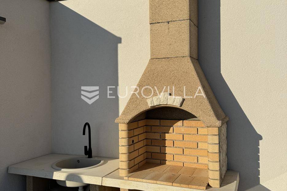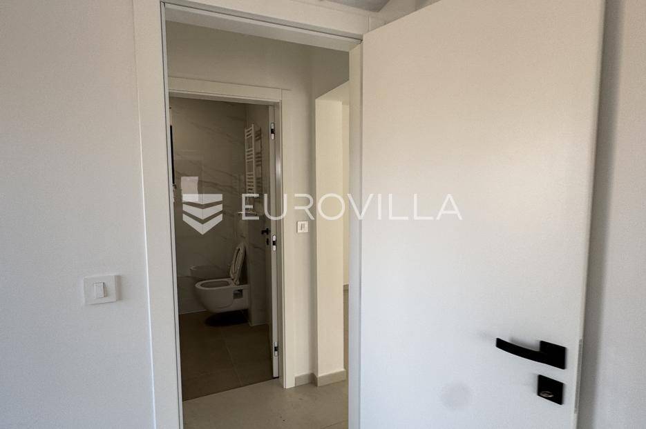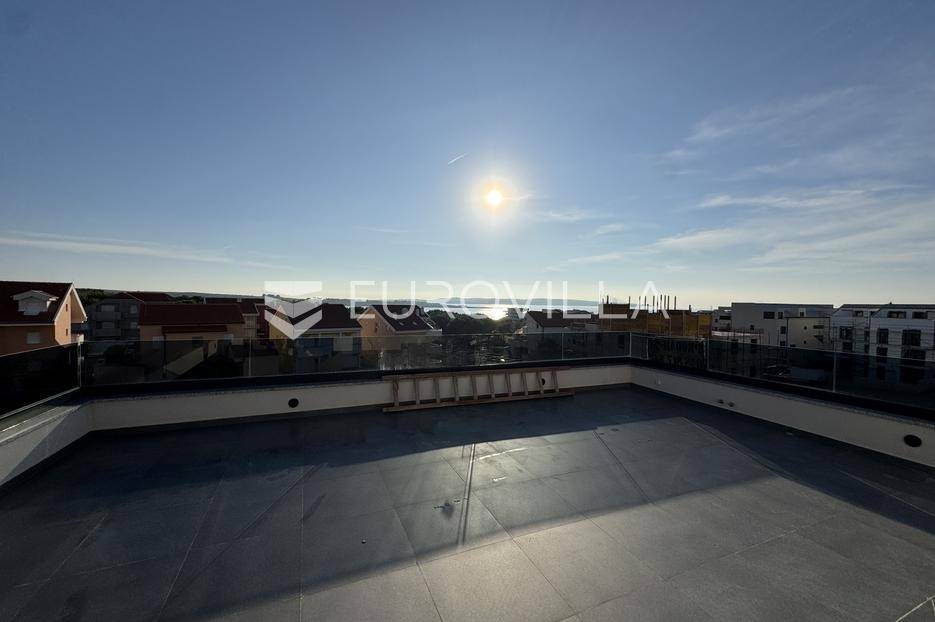Prodaje se useljivi dvosoban stan s krovnom terasom u vrhunskoj novogradnji u novoizgrađenom dijelu Povljane na otoku Pagu. Stan se nalazi u zgradi od ukupno 9 stambenih jedinica, od kojih su samo 2 trenutno slobodna za prodaju. Zgrada je dovršena 2025 te je potpuno spremna za useljenje!STAN S8 - 2. kat - 67,85m2 - Krovna terasaStan S8 se nalazi na 2. katu zgrade te je ukupne neto korisne površine (67,85m2). Sastoji se od otvorenog prostora kuhinje, blagovonice i dnevnog boravka, potpuno opremljene kupaonice, dvije spavaće sobe i loggie. Stanu uz to pripada i krovna terasa s kominom, ljetnom kuhinjom i tušem s koje se pruža predivan pogled na more i otoke. Idealno mjesto za provođenje ljetnih dana i večeri. Također, stan ima i jedno garažno parkirno mjesto s električnim priključkom.Sva dokumentacija je ishodovana i uredna, a stan je potpuno spreman za useljenje!Zgrada je udaljena svega 350 metara od mora, plaža i svih ostalih sadržaja potrebnih za ispunjen život ili odmor.Povljana je mirno priobalno mjesto smješteno na južnom dijelu otoka Paga. Poznata je po dugim pješčanim plažama, čistom moru i opuštenom mediteranskom ugođaju. Idealna je destinacija za obiteljski odmor i život u mirnom okruženju.Za dodatne informacije i dogovor oko razgledavanja nekretnine, slobodno nas kontaktirajte