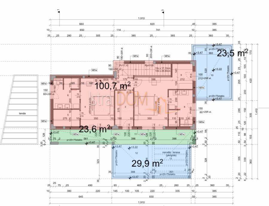 Površina buduće vile: 261,65 m² neto + bazen 35,1 m²