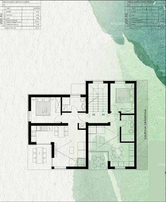 New in Offer!We are selling apartments in a new residential project, Pula.Apartment A2 is located on the 1st floor of building B with four residential units.The apartment has a living room with a kitchen and dining room, 1 bedroom, a bathroom, and a balcony.Storage room S3, parking lot P2 belongs to the apartment.Close to the city, public transport, fitness gyms, markets, beaches, schools, and kindergartens.For further information, please contact:Azra+385 91 611 5706+385 98 420 885azra@almadominvest.com