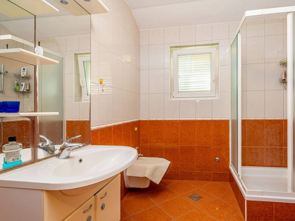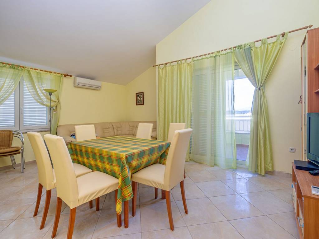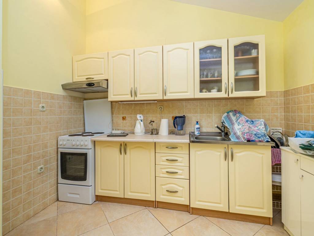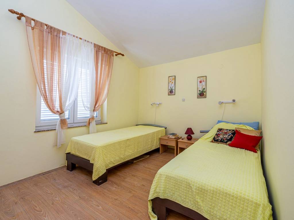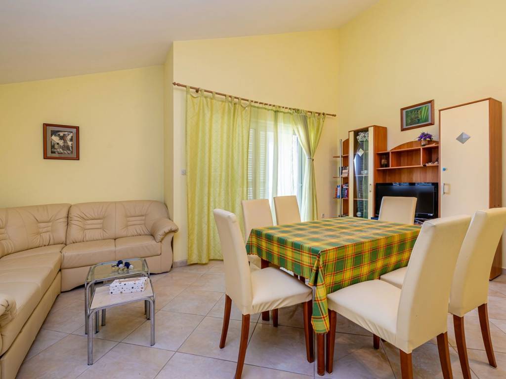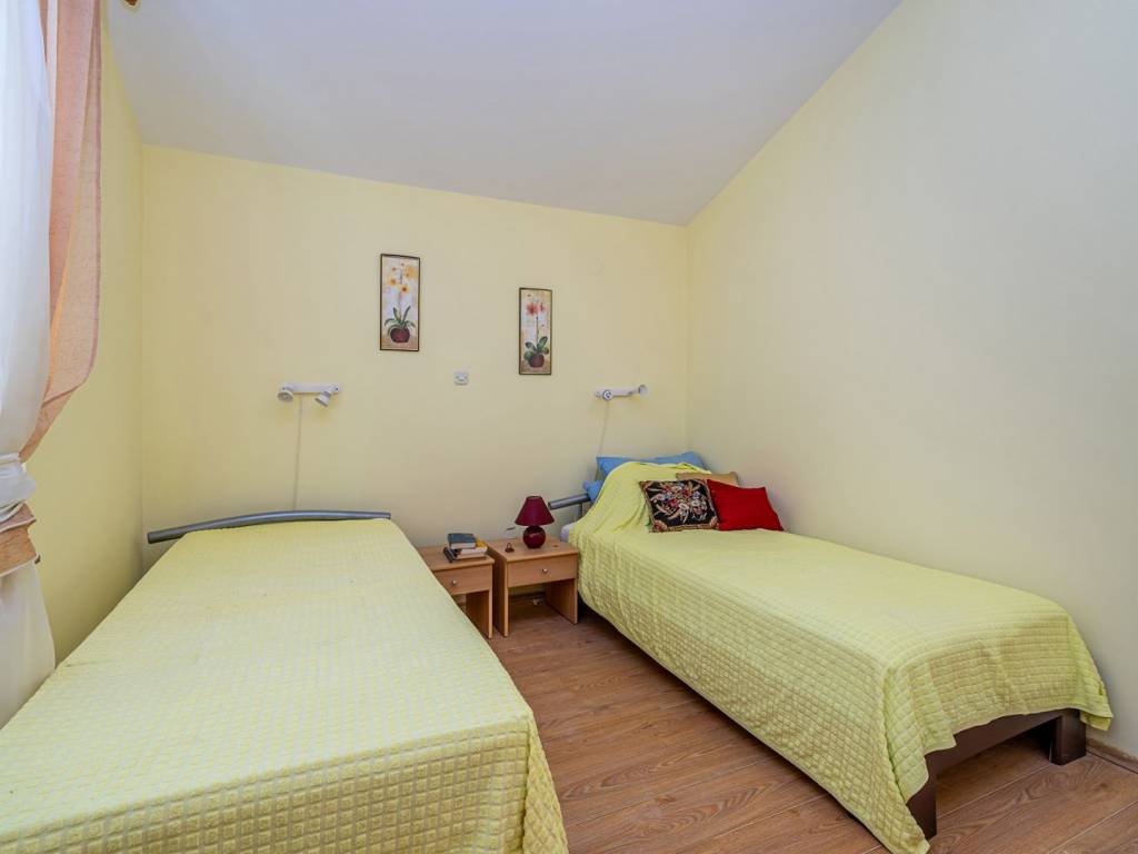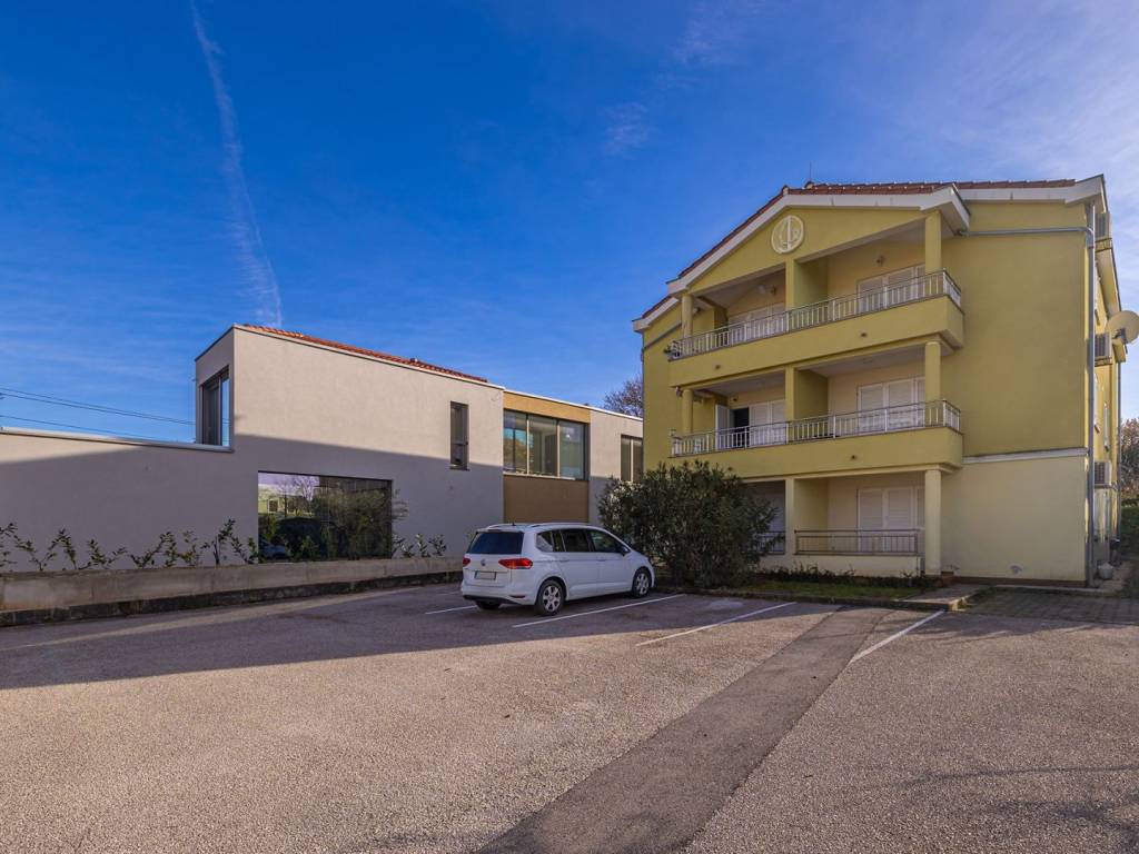 In a quiet part of Klimno, on the island of Krk, there is a modern apartment of 72 m² that combines elegant design, functionality and a fantastic location, just a few steps from the sea. It is located on the second floor of a well-built building with only six residential units, in a dead-end street with no traffic, which provides a high level of privacy and peace. The space consists of an entrance hall, an airy living area with a kitchen and dining room, two comfortable bedrooms, a bathroom and an additional storage room. A covered terrace with a beautiful sea view is ideal for relaxing or enjoying breakfast overlooking the coast. A special architectural advantage is the high ceilings that give the interior additional spaciousness and light. High-quality ceramic and laminate floors, as well as the fact that the apartment is sold fully furnished, allow for quick move-in without additional costs. Heating is also possible with wood, which creates a pleasant, homely atmosphere throughout the year. A private parking space is registered in the title deed. Thanks to its excellent location, just second row from the sea, and attractive features, this apartment is an ideal choice for tourist rental, a peaceful vacation or year-round living on the island of Krk.