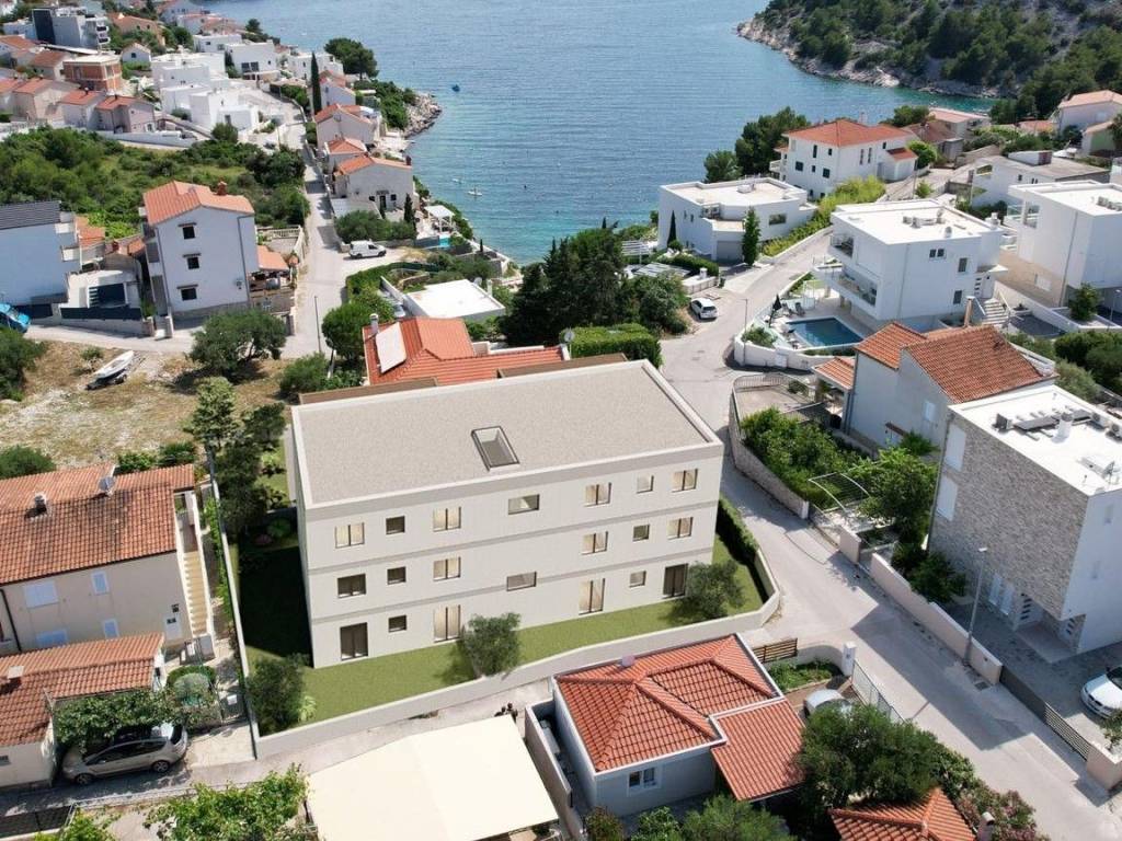 MAIN FEATURES OF THE PROJECT Vicinity of Rogoznica a quiet bay without noise and crowds Distance from the sea only 60 m Open sea view (especially 1st and 2nd floor) Modern architecture and spacious terraces High-quality construction premium materials Aluminium joinery, large sliding glass walls Underfloor heating in bathrooms Landscaped surroundings and private parking spaces Only 6 apartments in the building high level of privacy Ideal for a peaceful holiday, family environment, long-term investment AVAILABLE APARTMENTS GROUND FLOOR garden + spacious terraces APARTMENT 1 Apartment: 63.67 m Terrace: 15.84 m (calculated 7.92 m) Garden: 68.52 m (calculated 6.85 m) Parking: 3.5 m Total: 81.95 m Price: 293,000 APARTMENT 2 Apartment: 63.67 m Terrace: 15.84 m (calculated 7.92 m) Garden: 78.54 m (calculated 7.85 m) Parking: 3.5 m Total: 82.94 m Price: 298,000 1ST FLOOR excellent sea view APARTMENT 3 Total: 77.81 m Price: 315,000 APARTMENT 4 Total: 77.81 m Price: 315,000 2ND FLOOR best view, maximum privacy APARTMENT 5 second floor Total: 77.81 m Price: 335,000 APARTMENT 6 second floor Total: 77.81 m Price: 335,000 LOCATION PERFECT FOR THOSE SEEKING PEACE This new-build development is situated in a quiet, sheltered bay in the vicinity of Rogoznica far from summer crowds and noise, yet close enough to walk to everything you need: restaurants and cafés 23 minutes on foot grocery store a few minutes on foot beach literally 60 m away marina Frapa 57 minutes by car Split Airport 30 minutes Perfect for a peaceful holiday, a family-friendly environment and for those looking to escape stress.