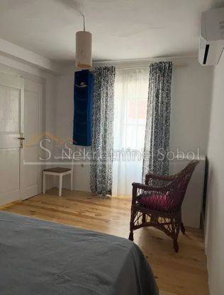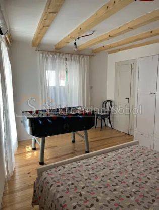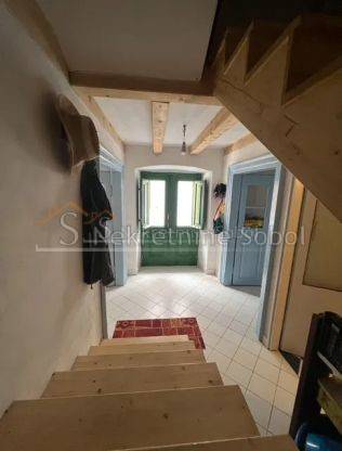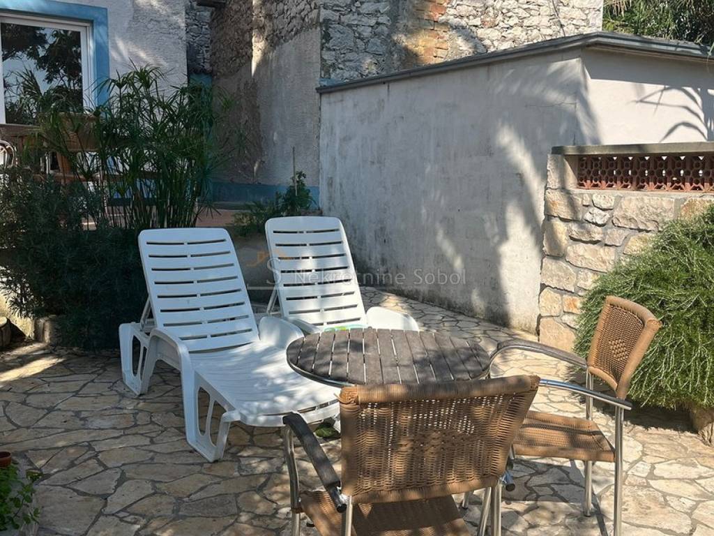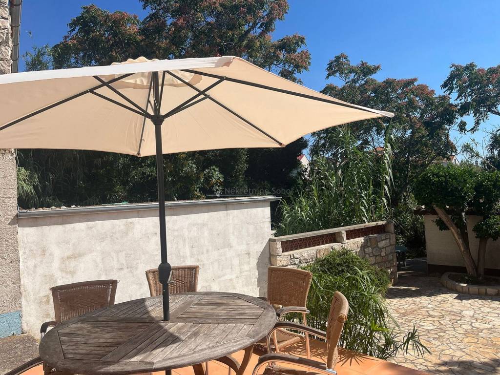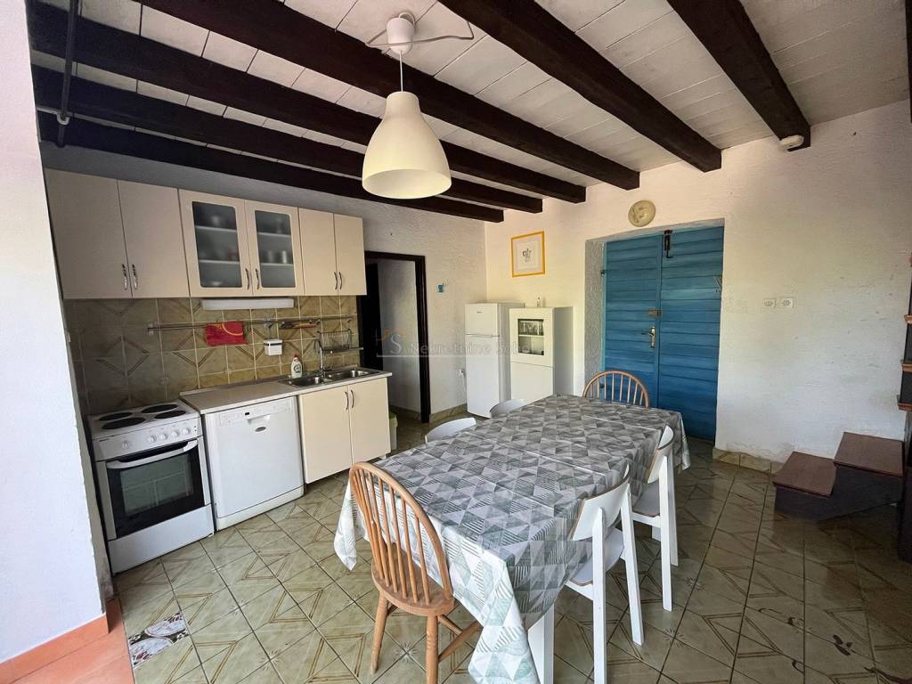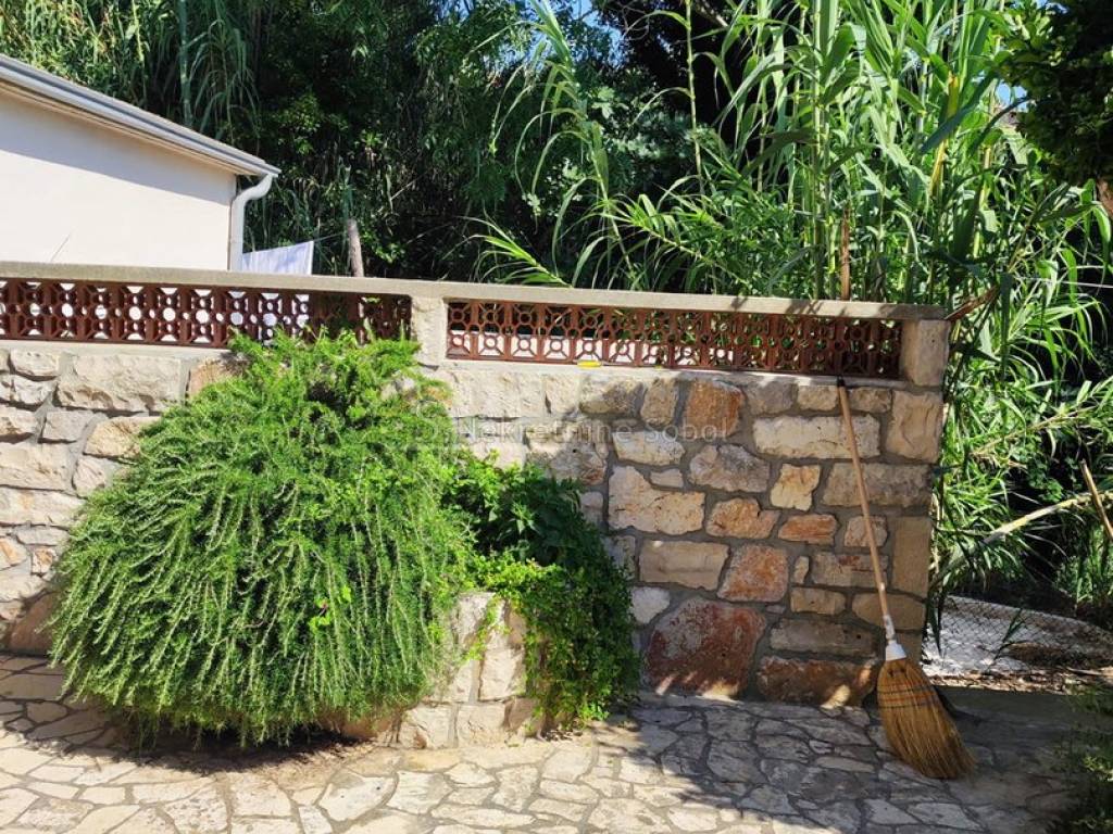 On the ground floor there is a kitchen with a dining room that has a wonderful view of the garden and access to the terrace through large glass sliding doors. There is also a bathroom and a storage room where there is a water pump that pumps water from the cistern. On the first floor there is a living room and a bedroom with a double bed. In the attic there is a large room with two single beds and one large double bed. All rooms on the garden side have a beautiful view of nature from both the attic and the sea.