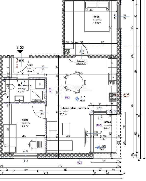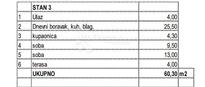 Apartment S3 Apartment S3 has a total area of 61.60 m² and is located on the first floor of the building. It consists of two bedrooms, a living room with a dining area and kitchen, a bathroom, a hallway, and a terrace. From the hallway, you access the living room, and from the living room, you exit onto the terrace. Heating is provided by a heat pump with underfloor heating, while cooling is ensured by an air conditioning unit. The apartment comes with a separate storage room of 2.80 m² and two parking spaces. The building is equipped with an elevator, allowing easier access to the apartment. The building is located in an attractive and peaceful location, just 300 meters from the center of the settlement, where markets, cafes, restaurants, pharmacies, and other necessary amenities are available. Novigrad is 7 km away, Poreč is 11 km away, and the sea and beach are 2000 meters away. The expected completion of construction is by the end of 2025. Note: The listed price applies to legal entities; for private individuals, the price is increased by the amount of VAT. ID CODE: IS1515926 Karlo Šestan Asistent u posredovanju Mob: 091/361-1922 Tel: 052 770 811 E-mail: karlo.sestan@dogma-nekretnine.com www.dogma-istra.com