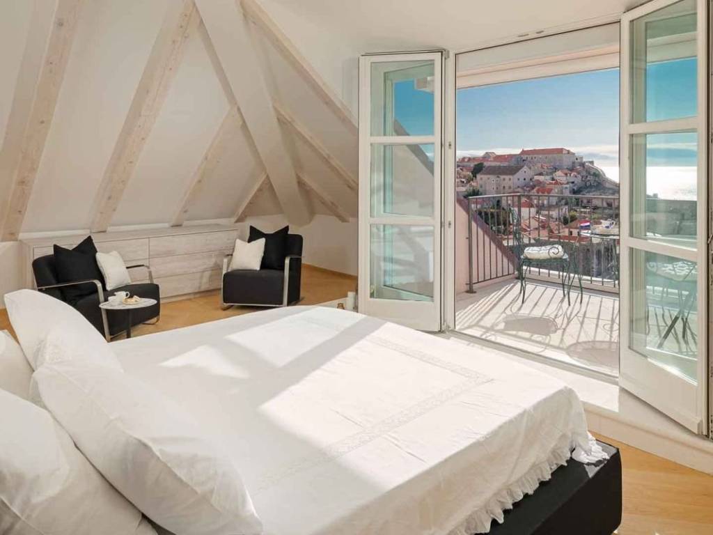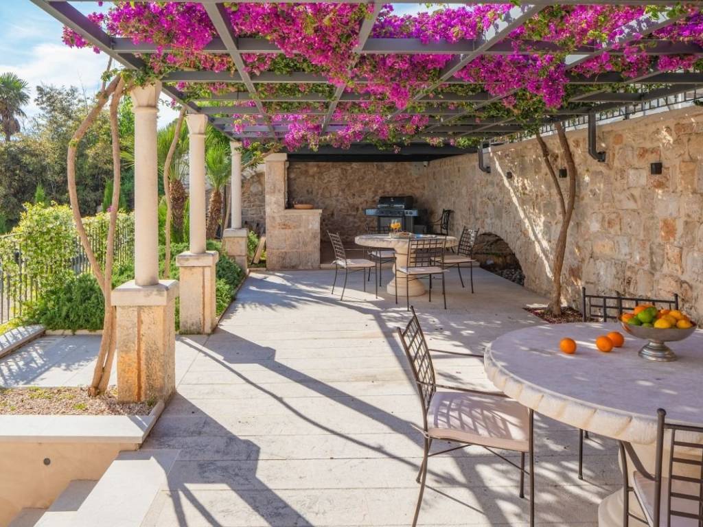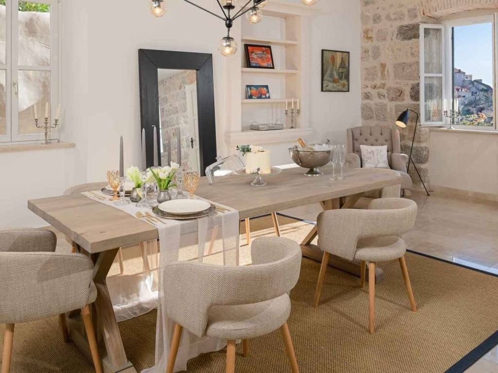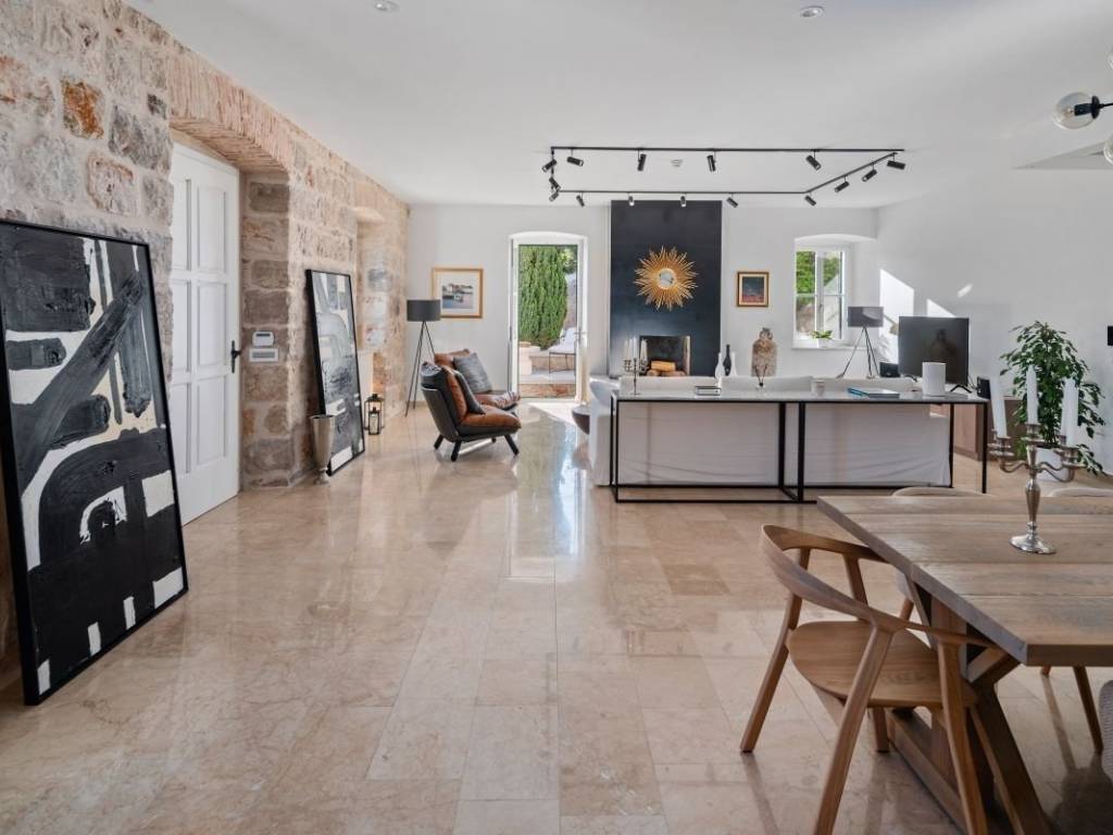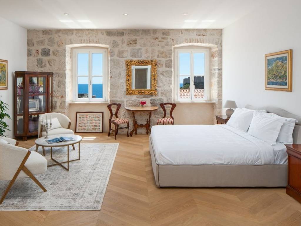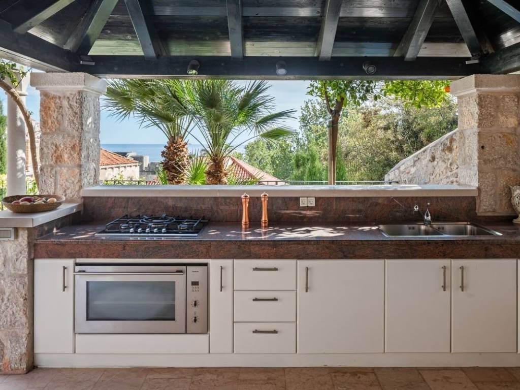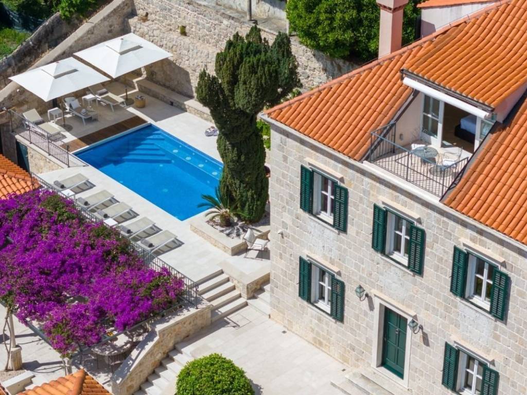 In an exceptional location, right next to the UNESCO-protected historic center of Dubrovnik, an impressive Dalmatian stone villa is for sale that enchants with every detail, both in the interior and exterior. Situated on an elevated position, the villa offers an irreplaceable panoramic view of the crystal clear sea and the magnificent walls of Dubrovnik.   On a spacious plot of approximately 1100 m2, there is a villa of approximately 540 m2, spread over four elegantly decorated floors. The neat garden, completely protected from view, offers complete privacy and a sense of Mediterranean peace. In addition to a beautiful swimming pool with a sunbathing area, there is also a summer kitchen, rooms provided for storage, as well as an additional building with a luxurious sauna and a modernly equipped gym. The space is enriched with rich plantations of indigenous plants that create an authentic Mediterranean atmosphere.   In the basement of the property, there is a beautiful wine cellar that further contributes to the atmosphere of staying in the property. The ground floor has an open concept that connects the living room and dining room into a perfectly harmonious whole. The interior is a combination of contemporary design and traditional elements such as thick stone walls and high ceilings. The kitchen, designed in a classic style, is equipped with top-of-the-line appliances and skillfully combines modern functionality with Dalmatian charm. Also on the ground floor, there is one bedroom, as well as a guest bathroom.   On the first floor of the property, there are two spacious bedrooms, each of which has its own bathroom, while one has its own wardrobe. Internal stairs lead to the last floor of this property, which is reserved for the bedroom, which has a wardrobe, as well as its own bathroom. An additional advantage of this floor, or bedroom, is its own balcony, which offers a beautiful view of the old town center and the sea.   An additional benefit of this property is the apartment located on the same plot, which extends to approximately 90m2 and is luxuriously furnished.   This property represents a rare opportunity, a home that goes beyond luxury and becomes a true experience. A villa where every corner tells its own story, every terrace offers a relaxing view, and every moment spent in it awakens a feeling of complete harmony with the unique Mediterranean ambience.