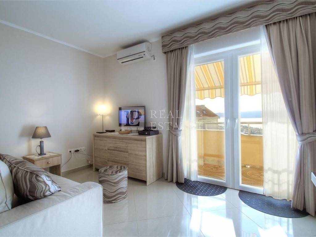 We are selling an apartment in a newer and high-quality residential building. The apartment consists of three bedrooms, two living rooms, two kitchens, two bathrooms and three balconies with a wonderful view of the sea and the island of Krk. It is located on the 2nd floor and basically consists of two apartments, one of which is successfully rented out and is categorized as 4*.
