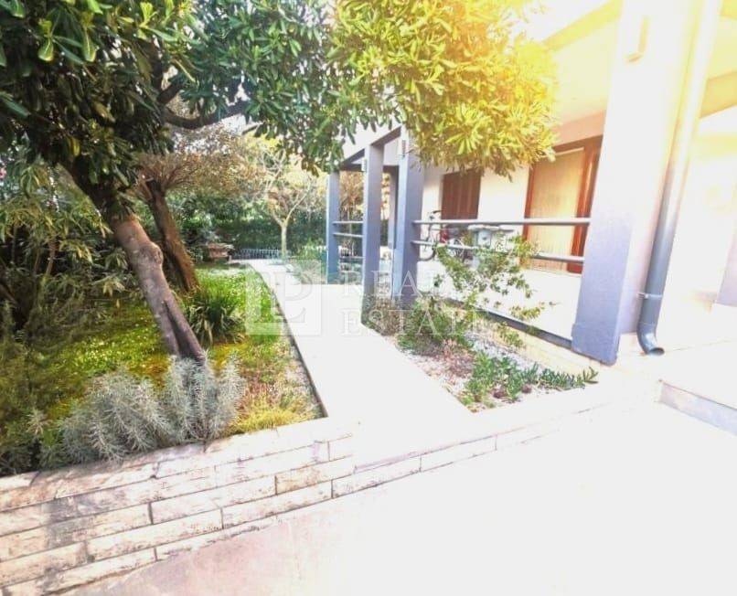 This spacious apartment consists of a hallway, a kitchen with a dining area, a living room, two bedrooms, two bathrooms, a storage room and a large terrace surrounded by Mediterranean plants. The owned apartment has a garden of 100 m2 and one covered parking space.