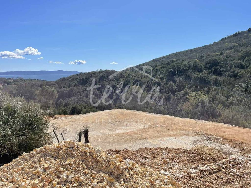 Labin, građevinski teren sa građevinskom dozvolom i predivnim pogledom na more
