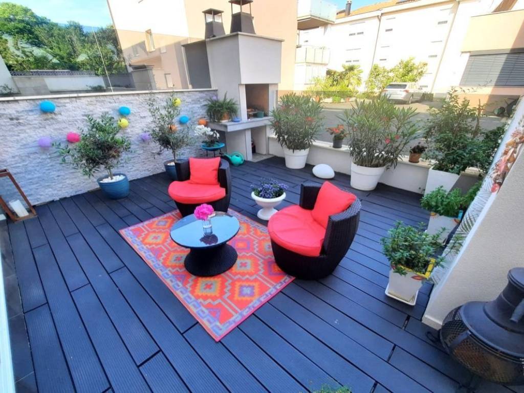 Otok Krk, Njivice, prodaja opremljenog apartmana površine 63,55 m2, u prizemlju apartmanske zgrade, na atraktivnoj lokaciji, 100 m od mora. Apartman se sastoji od dnevne sobe, kuhinje, blagovaone, dvije spavaće sobe, kupaonice, spremišta, hodnika, zatvorene loggie i terase od 47,28 m2. Kvalitetna gradnja i oprema, PVC stolarija, podno grijanje, klimatizacija, parkirno mjesto.