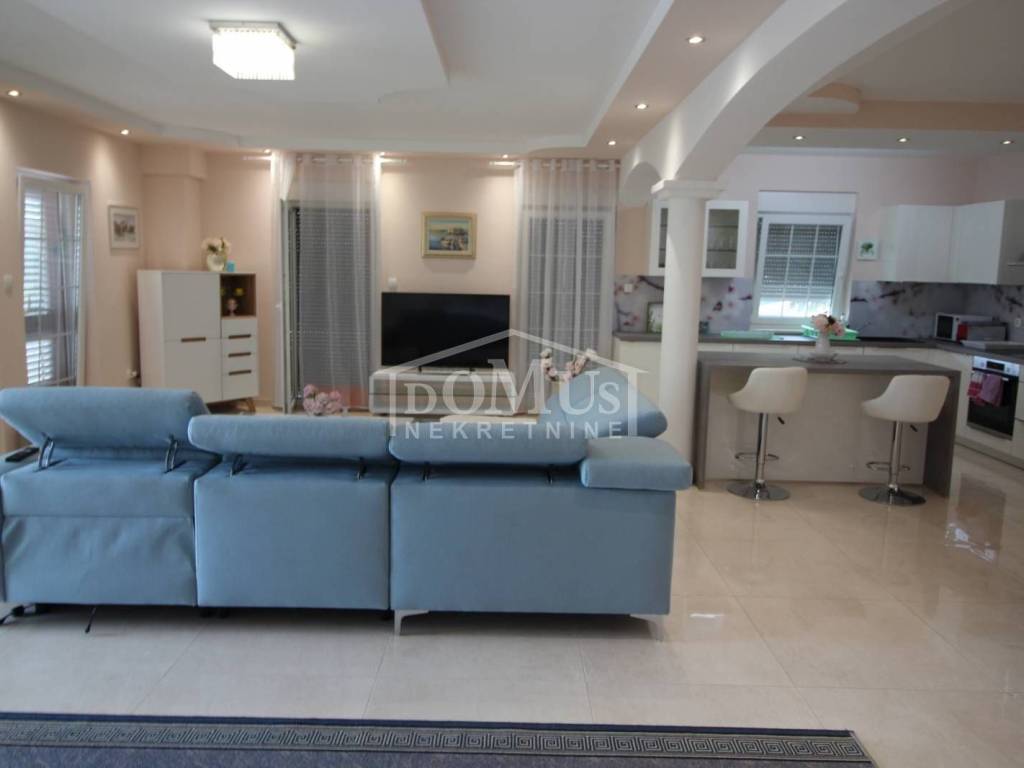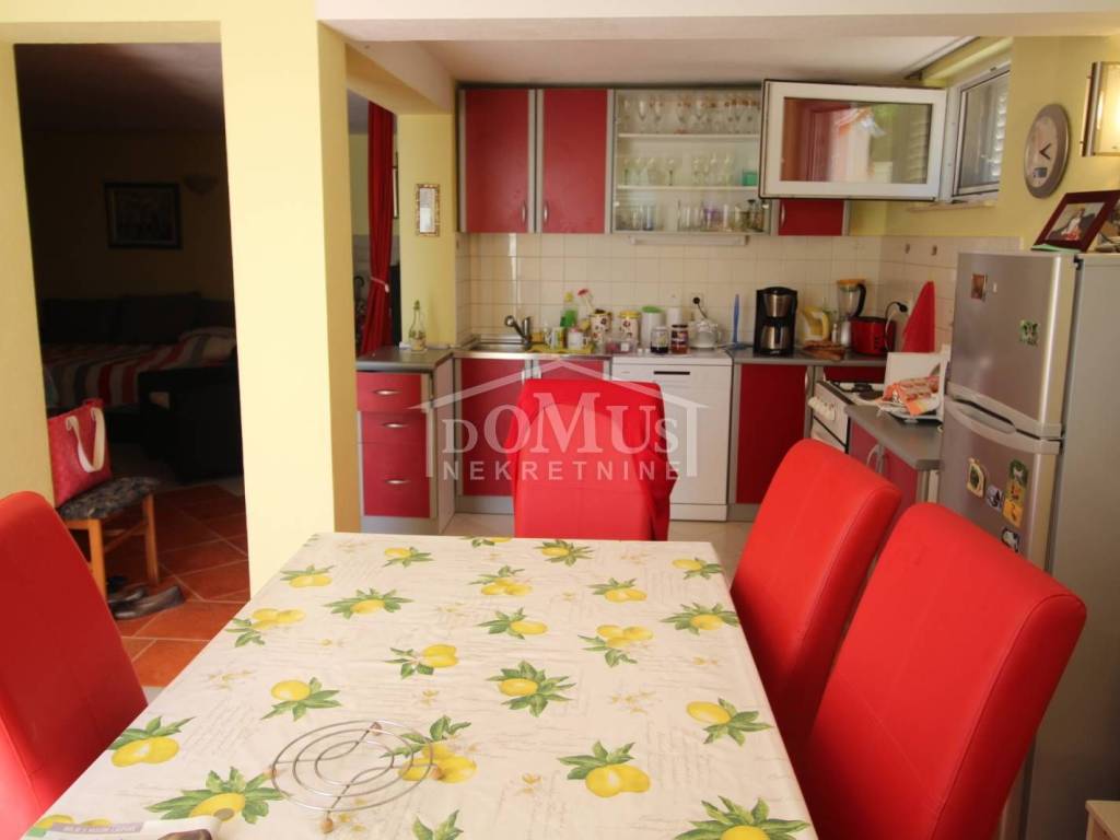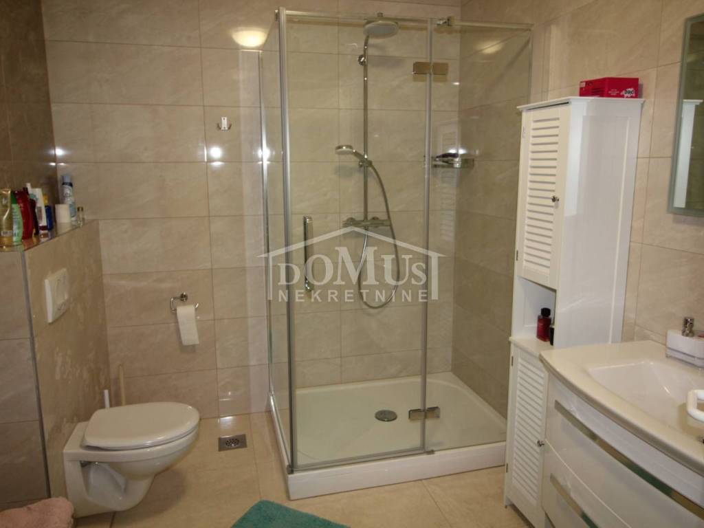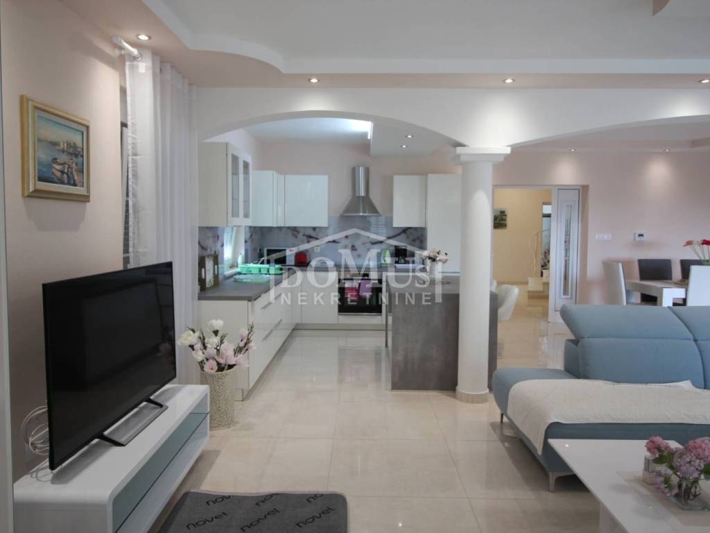 Villa with a pool, newly built, on the land plot of 1.020m2, located at a very quiet area that provides complete privacy to its owners. Villa has three floors: basement, ground floor and top floor with total of 329,71m2 useful area. In the basement, there is apartment S1 with 65,63m2 living area and a storage room with a pantry with total of 25m2. There is a separate entrance to the ground floor with luxuriously equipped apartment S2 with a total of 143,18m2 living area + terrace 25,86m2 which consists of interior staircase, hallway, 3 bedrooms and each bedroom has its own bathroom, kitchen and spacious dining area, comfortable living room with exit to a large covered terrace overlooking the sea, Tribunj and nice courtyard. On the ground floor there is also a double garage of 37,50m2 (for two cars) which has a separate entrance to the villa, as well as another room and a toilet. Interior staircase lead to the top floor where S3 1-bedroom apartment is located, with total of 30,09m2 living area + terrace 17,85m2 with a sea view. An integral part of this beautiful property also features a 4m x 8m pool. The courtyard is nicely arranged and enriched with Mediterranean herbs, while the interior has modern design. Distance to the beach is 600m, and to the center 400m.