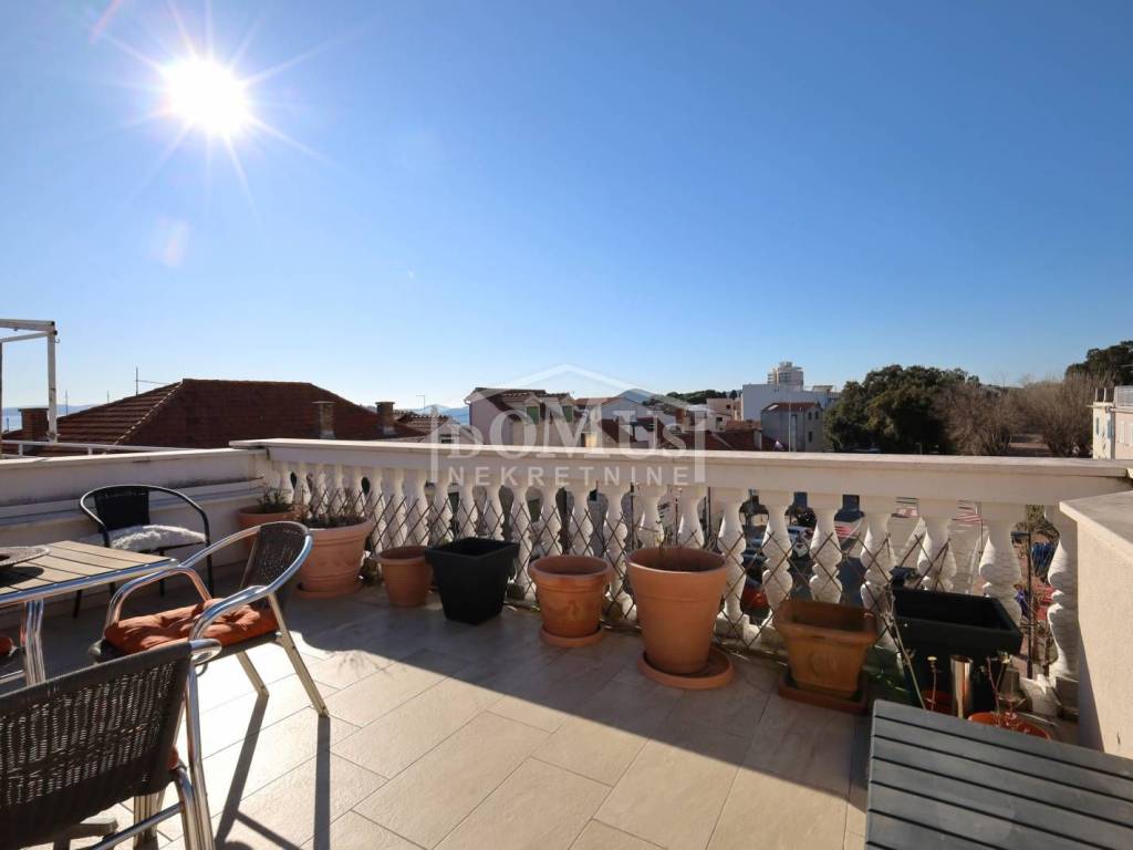 Vodice, city center, completely renovated stone house in rustic style. The house is located in the immediate vicinity of the waterfront and the beach and has 4 floors (ground floor + 1st floor + 2nd floor + high attic) with a total usable area of 170.12 m². On the ground floor there is a business space of 46.6 m², while the three-story apartment of 123.5 m² extends over the 1st floor, 2nd floor and high attic. The house has two terraces: on the first floor a terrace of 3.00 m² and in the attic a spacious terrace of 23.57 m² with a view of the city center, park and sea. On the 1st floor there is a hallway and two bedrooms, each with its own bathroom. On the 2nd floor there is a kitchen with a dining room and living room as one unit and an additional toilet. In the high attic there is a bedroom with a bathroom and access to a spacious terrace with an attractive view. High-quality materials were used during the renovation of the house. The house is suitable for tourism and rental, it is fully furnished and ready to move in immediately. The price of the property includes complete furniture. Additionally, there is the possibility of using two parking spaces on a plot which is 750m from the house. The distance from the sea is 50 m, and from the arranged beach 250 m.