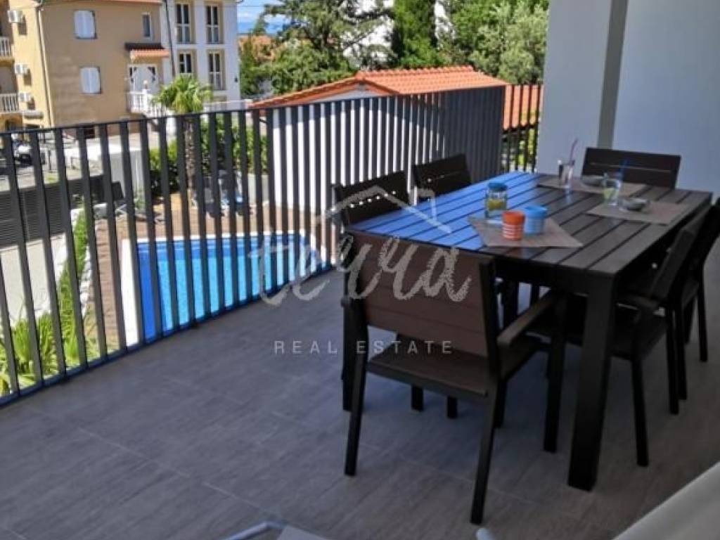 In Dramalj - Crikvenica, there is a beautiful, completely renovated detached house with a living area of 375m2 and a large garden. The house has a floor plan of 12.5x10 and consists of four apartments and a separate building in the yard behind the house. There are two apartments on the ground floor. The smaller apartment is 37m2 + 3m2 terrace, while the area of the larger apartment on the ground floor is 44m2 + 10m2 terrace. On the first floor there is an apartment of 75 m2 + 25 m2 terrace, while on the second floor there is an apartment of the same area as on the first floor and a small storage room of 1.5 m2. In the yard there is a separate building with a terrace of 30 m2. There is also a covered parking lot in the yard where you can park five vehicles and a wonderful swimming pool of 32 m2. All installations (water, electricity, sewerage) were renewed on the building, new exterior PVC joinery and interior joinery was installed. The house also has new floors, bathrooms, while on the outside there is a new facade, roof and new patio paving. The entrances to the apartments are equipped with security doors, preparations have been made for an alarm system, and every room in the house has air conditioning. The house is sold fully furnished with all furniture. Considering the location and arrangement, the facility is certainly a good opportunity for investment and tourism, it is categorized with 4* and can get 5* and on the Booking.com page it is rated with a rating of 9.6 (exceptional). A good microlocation and a wonderful view, and all of the above are the reasons why this property deserves your attention.