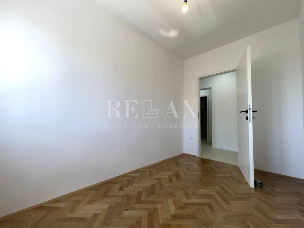 The complete renovation of the apartment was carried out in 2025. High-quality materials were used in the interior – the floors feature elegant microcement and classic herringbone oak parquet, which bring warmth and sophistication to the space. The apartment is unfurnished, allowing the new owner full freedom to decorate according to their own preferences and style.