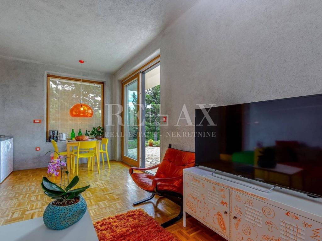 The guest house, a separate unit with its own entrance and terrace, is ideal for guest privacy, a studio, office, or tourist accommodation. The entire property is enclosed by an authentic stone wall, enhancing the sense of security and exclusivity.