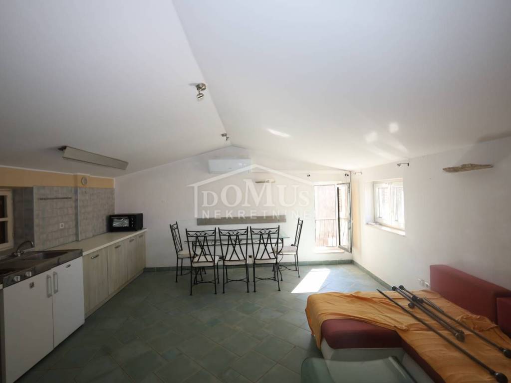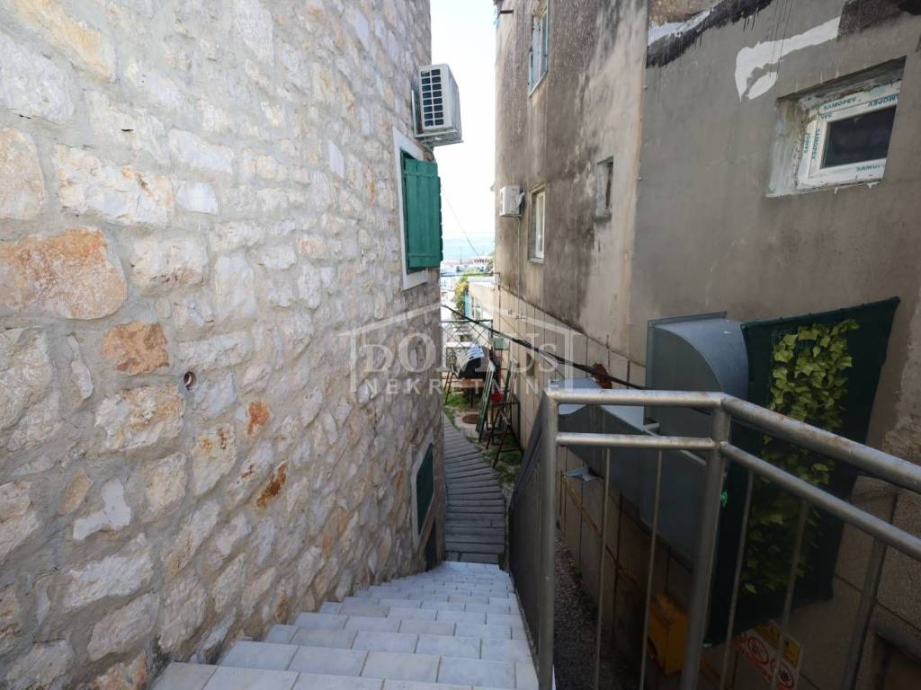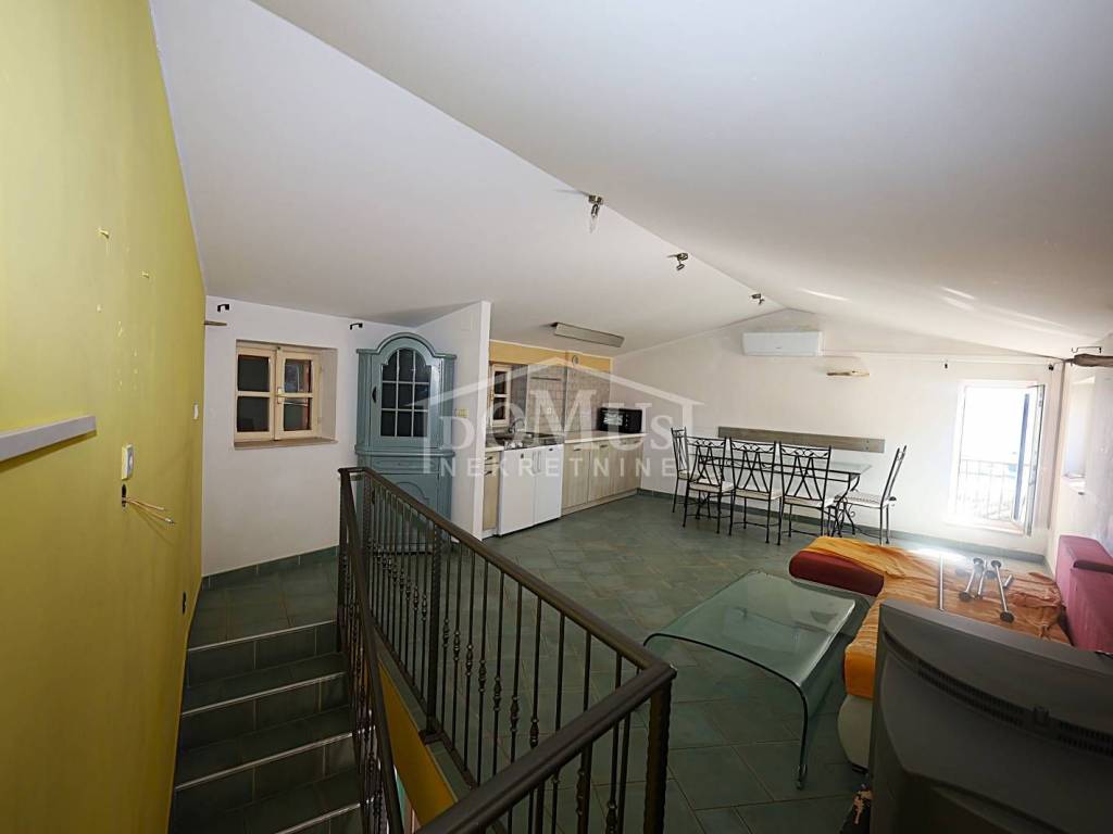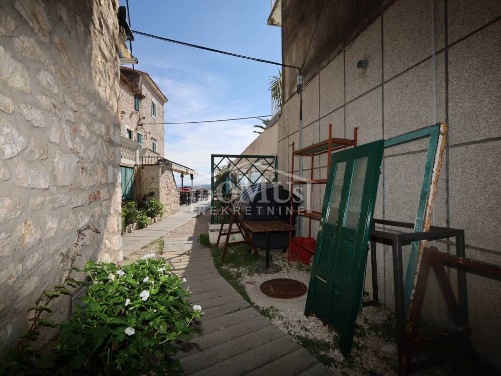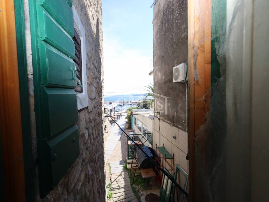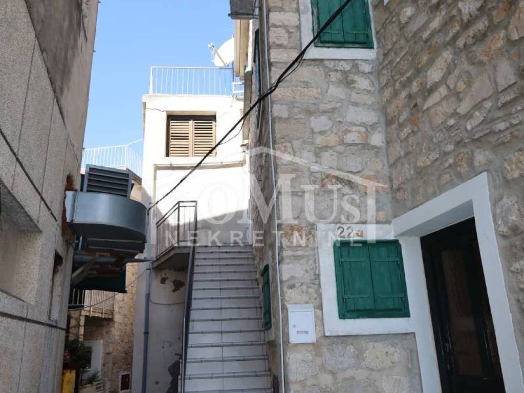 Prime location in the center of Vodice, along the main promenade, second row to the sea.This 90 m² stone house spreads over three floors. On the ground floor, there is a konoba of 30 m² with a separate entrance, ideal for additional space or commercial use.The upper two floors form a comfortable duplex apartment, including a spacious hallway, two bedrooms, a bathroom, and a large living room with kitchen and dining area, offering a beautiful sea view. The house has car access, and parking is available at a nearby public parking lot.