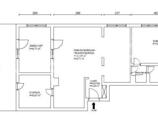 Prodaje se 2S stan sa velikom terasom na zadnjem petom katu armirano betonske zgrade s liftom nadomak samog centra grada. U 70 m2 zatvorenog prostora vrlo lako je moguće dobiti dodatnu spavaću sobu. Stanu pripada i spremište od 4m2 u podrumu zgrade gdje se nalazi i atomsko sklonište. Stan je trenutno namješten pa je u stvarnosti drugačiji dojam. Tražena i rijetko dostupna lokacija nadomak svih potrebnih sadržaja.