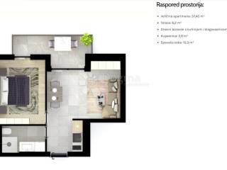 The apartment, with a total area of 37.40 m, is designed to provide maximum functionality and comfort. The interior consists of a spacious bedroom, an elegant bathroom, and a bright living room with an open-plan kitchen and dining area. The living spaces are filled with natural light, while the 6,20 m terrace with a sea view creates a perfect spot for relaxing, enjoying the sea breeze, and listening to the sound of the waves.