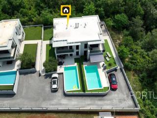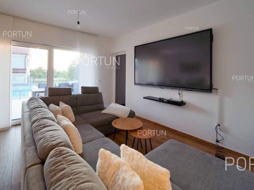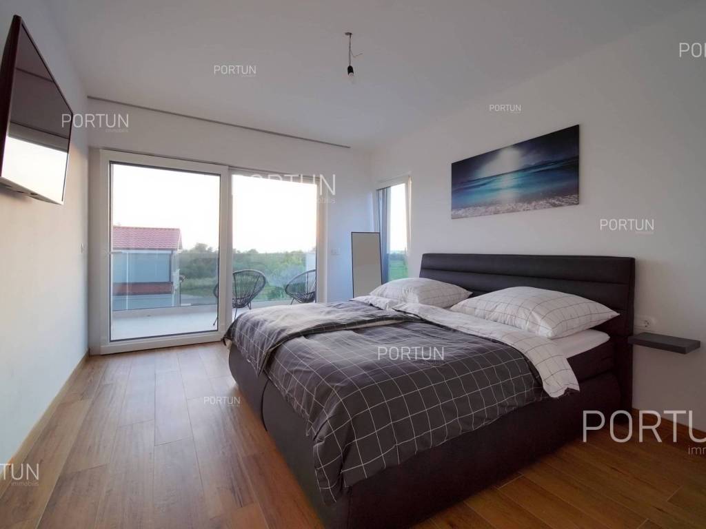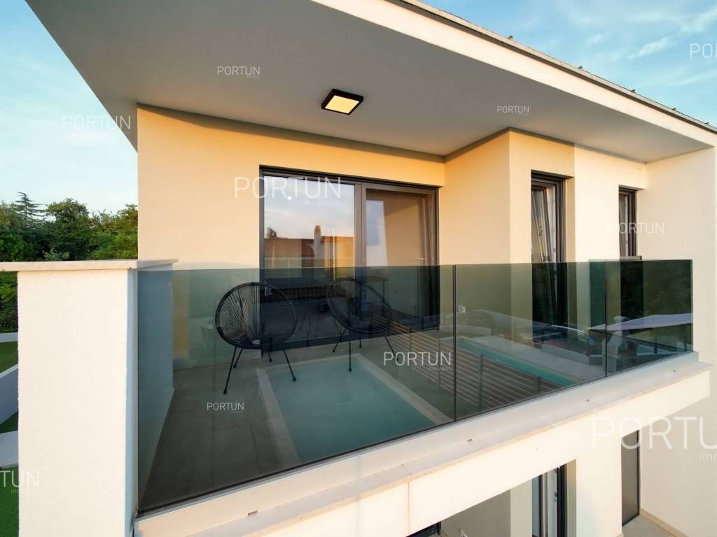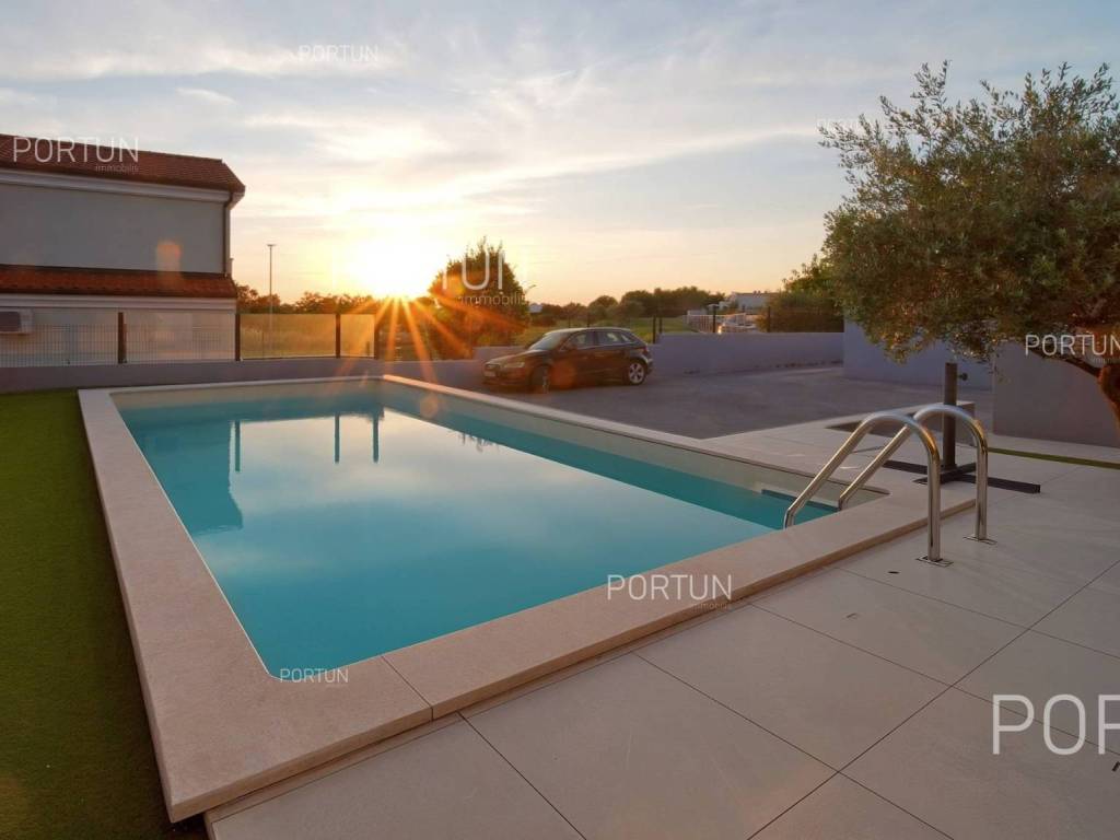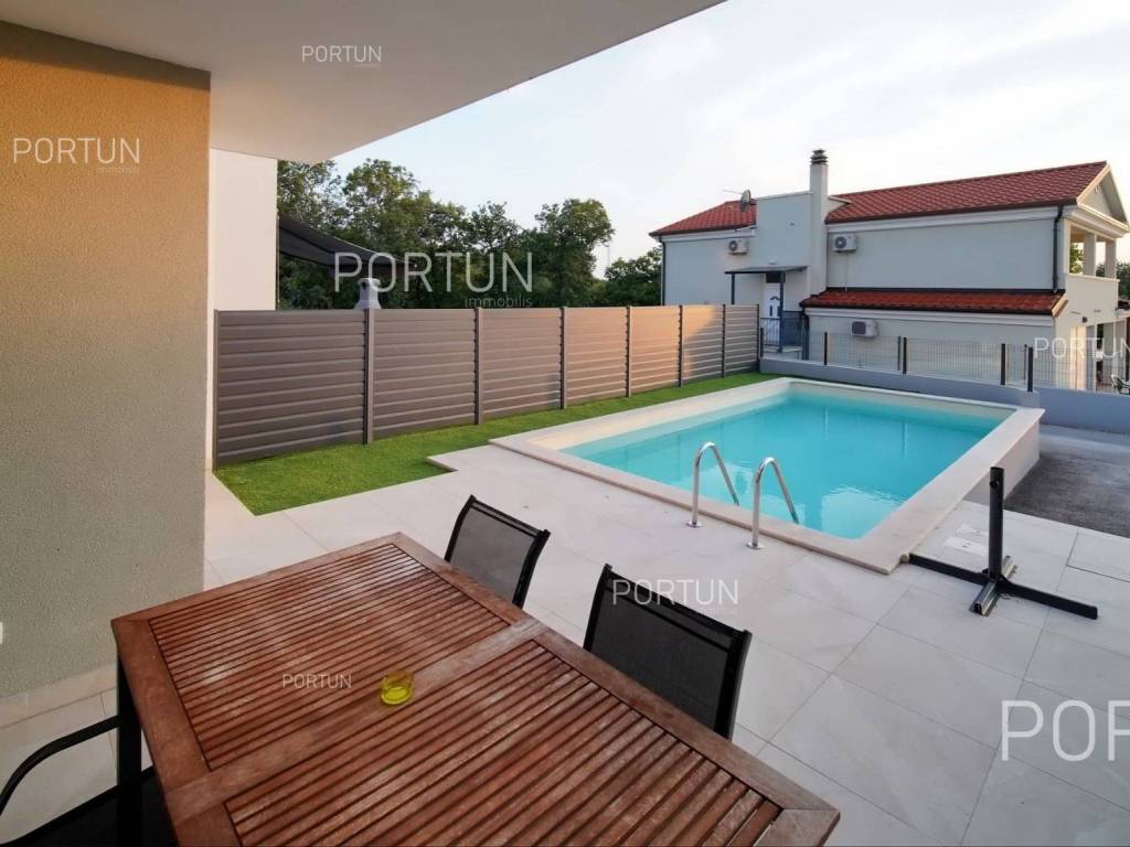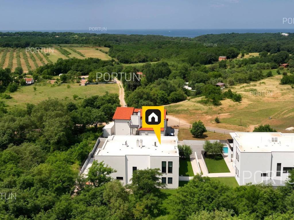 In the quiet Istrian village of Babići, near Umag, a modern house with a swimming pool built in 2022 is for sale. The property offers a view of the sea, full comfort on two floors and an attractive outdoor relaxation area. Ideal for summer, rental or permanent living.New holiday home located in Babići, a charming village surrounded by greenery and vineyards, just 1.6 km from the sea. The house consists of two floors connected by indoor stone stairs and offers three bedrooms, living room with kitchen, a total of three bathrooms and two terraces. The house is fully furnished and ready to move in.On the ground floor (61.24 m2) there is a spacious living room, kitchen with dining area, bathroom, hallway and exit to the terrace. On the upper floor (60.80 m2) there are three bedrooms, an additional bathroom and separate toilet. The sea view from the upper floor adds value and appeal to the property.The house offers many modern amenities including air conditioning, TVs in all rooms, PVC joinery with triple glazing, blinds and mosquito nets, and wood-patterned ceramic floors. There is parking for two vehicles, an electric vehicle charger, and a fenced yard with panel fence and outdoor lighting.The outdoor area features a skimmed pool of 25.00 m2, made of concrete with foil and salt water system (electrolysis). The yard is arranged for maximum privacy and enjoyment. Perfect for tourist rental, family holidays or permanent residence on the Adriatic.Babići is a peaceful village near Umag, only 6 km from the town center. The beach is just 1.6 km away, and shops, restaurants, schools, and health services are just minutes away by car. Proximity to the highway, Portorož airport, and destinations like Novigrad and Buje makes this location very convenient.Interested in this property? Contact us for more details, additional photos, or to schedule a viewing. We're here to answer all your questions!Distances from the propertyUmag | 6 kmSea | Beach 1,6 km Services | Food store 5 km - Inn or restaurant 200 m - Elementary School 7 km - Health center 7 km - Pharmacy 7 km Sports and fun | Golf course 15 km - Basketball court 7 km - Aquapark Istralandia 14 km - Cycling and hiking trail Parenzana 12 km Nearby towns | Novigrad 9 km - Buje 10 km Traffic | Highway entry Buje 7 km - Portorož Airport 17 km Parking spaces Parking for two carsAbout the houseThe entrance to the house is on the ground floor level, from the northeast side, and vertical communication takes place via an internal staircase. The basic architectural characteristics of this new holiday home are: Floors | Ground floor + First floor Concrete slab floors Built in 2022EquipmentJoinery | PVC joinery with triple glazing - Blinds - Mosquito screens - Security PVC entry doorMultimedia | TV in the living room - TV in each bedroomHeating and cooling | Air conditioners LG (2) - Electric boilerFlooring | Ceramics with a wood patternOutdoor spaceEquipment | Outdoor lighting - Charger for electric vehiclesFences | Wall with panel fenceOutdoor relaxation areaSkimmer pool 25,00 m2 | Concrete construction - Pool liner: Foil - Salt water (disinfection by chlorine electrolysis)Services Connection to the power grid Connection to the water supply network Connection to the sewage system Mobile internet Paved public access roadDocumentationExtracted documents | Floor study - Building permit - Usage permissionArea calculationThe area of the house (122,04 m2) includes the areas of these spaces:Living area (Ground floor + First floor) = 108,65 m2 x 1,00 = 108,65 m2*Terrace (Ground floor + First floor) = 19,00 m2 x 0,25 = 4,75 m2**Covered terrace (Ground floor + First floor) = 17,28 m2 x 0,50 = 8,64 m2****Areas are calculated with coefficient c= 1,00**Areas are calculated with coefficient c= 0,25***Areas are calculated with coefficient c= 0,50The garden area is approx. 145 square meters. Data source = Plan of special parts of the building (floor study)