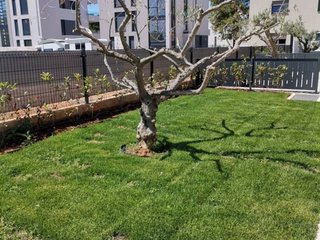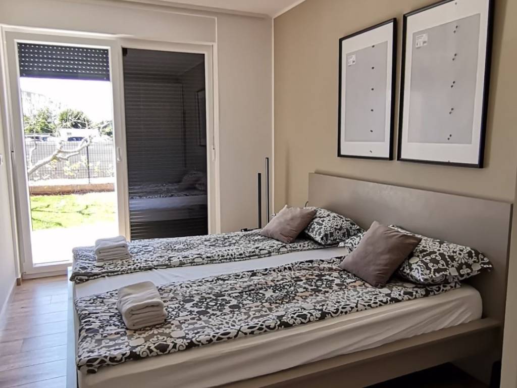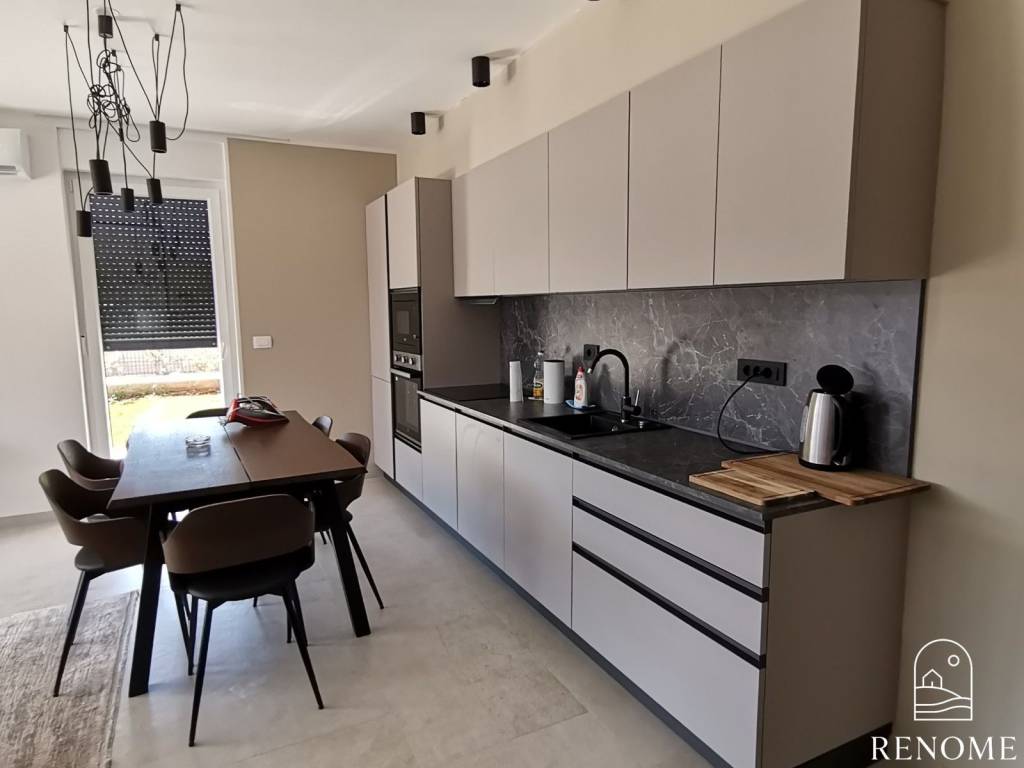 A modern furnished apartment in the city center with a living area of 80.49 m2 is for sale. The apartment is located on the ground floor and consists of an entrance hall, 2 bedrooms, a bathroom, living room with kitchen and spacious terrace. The apartment has a garden and a parking space in underground garage!