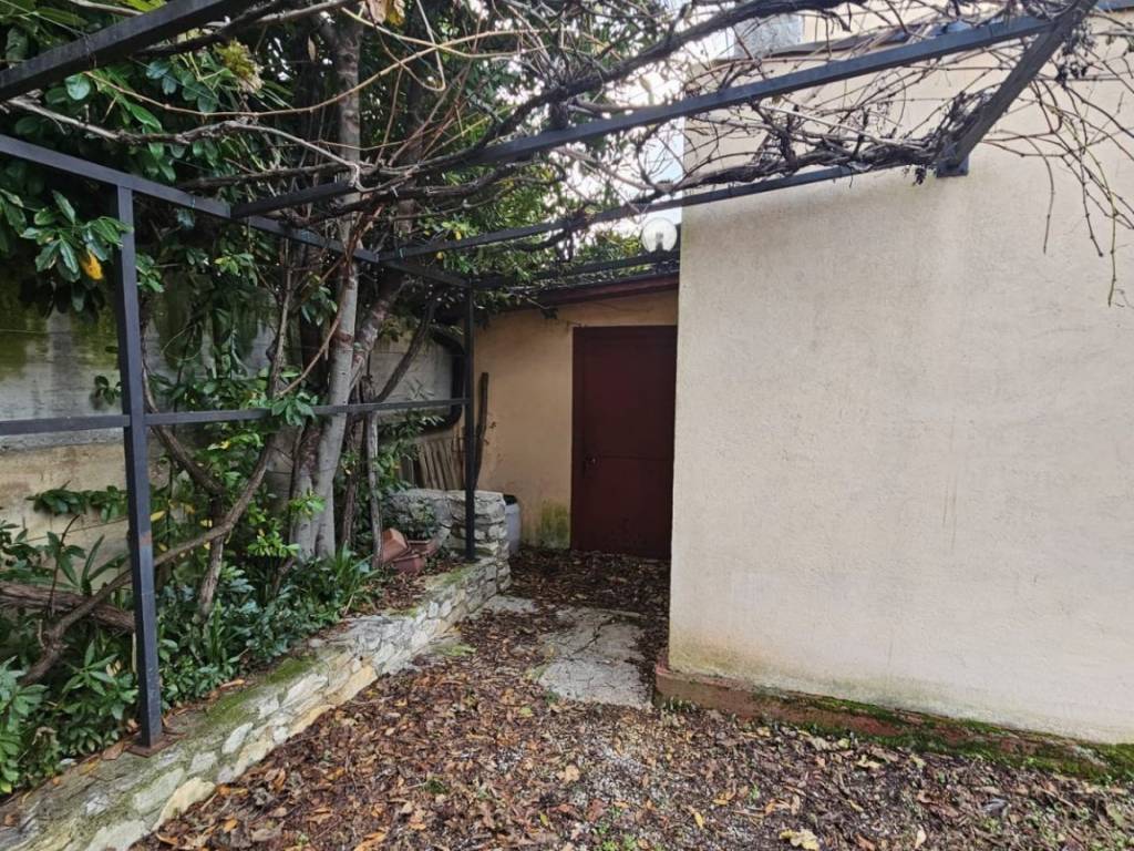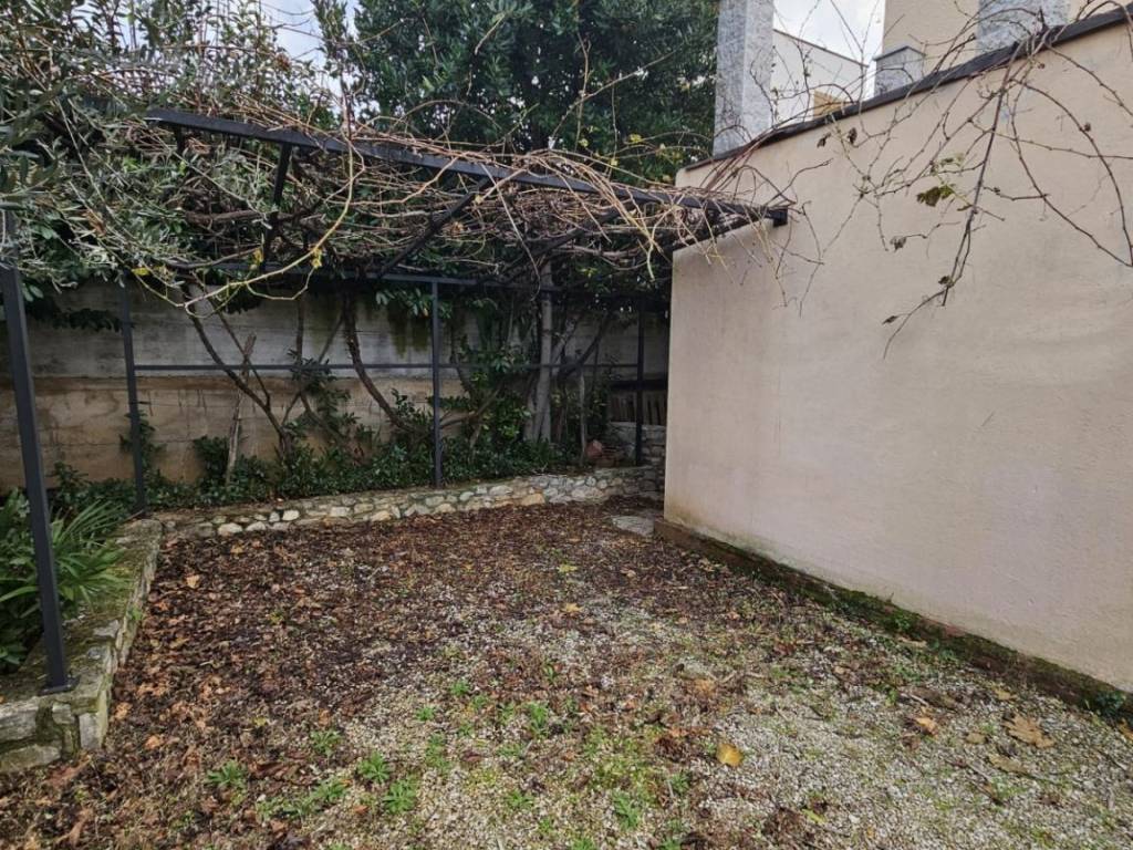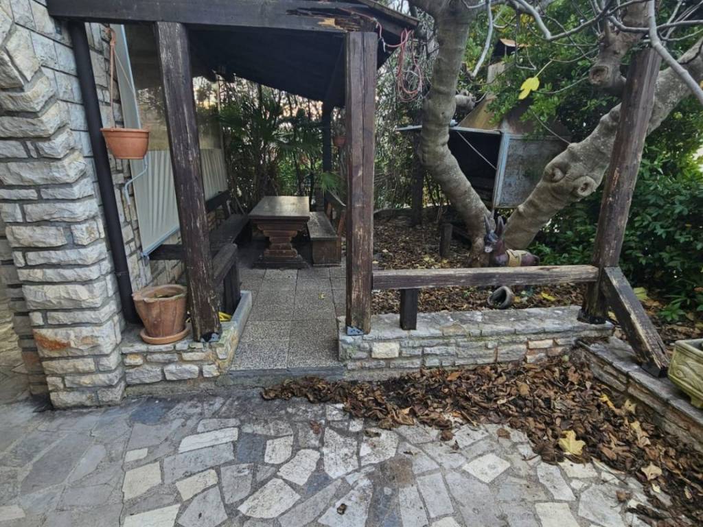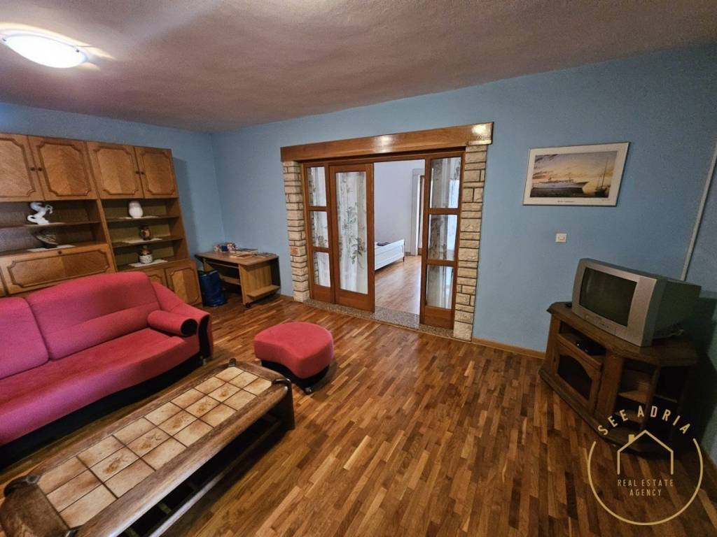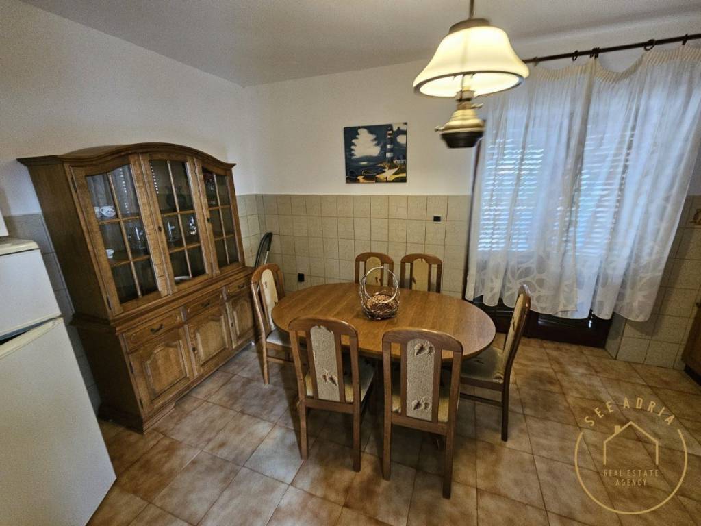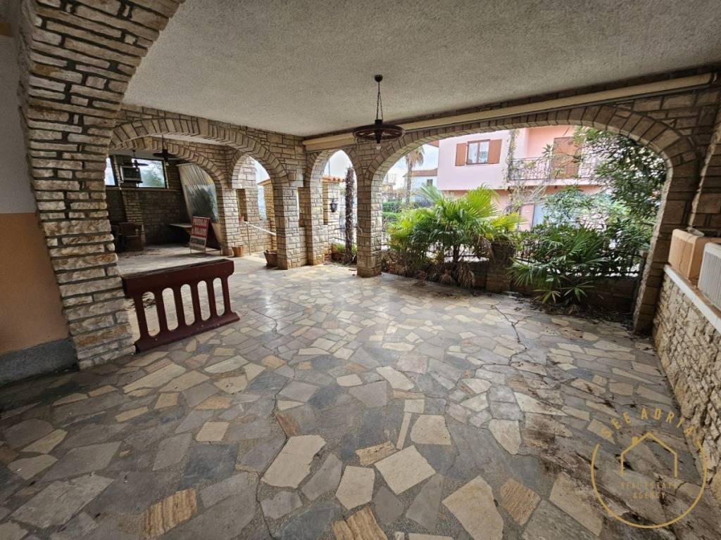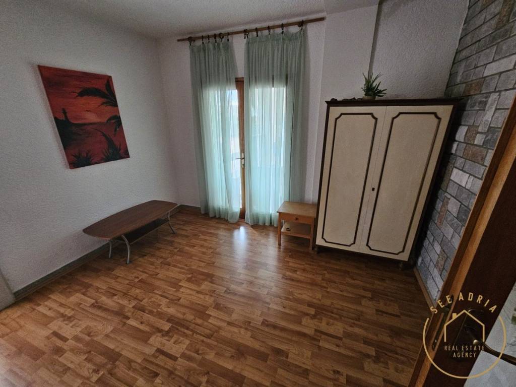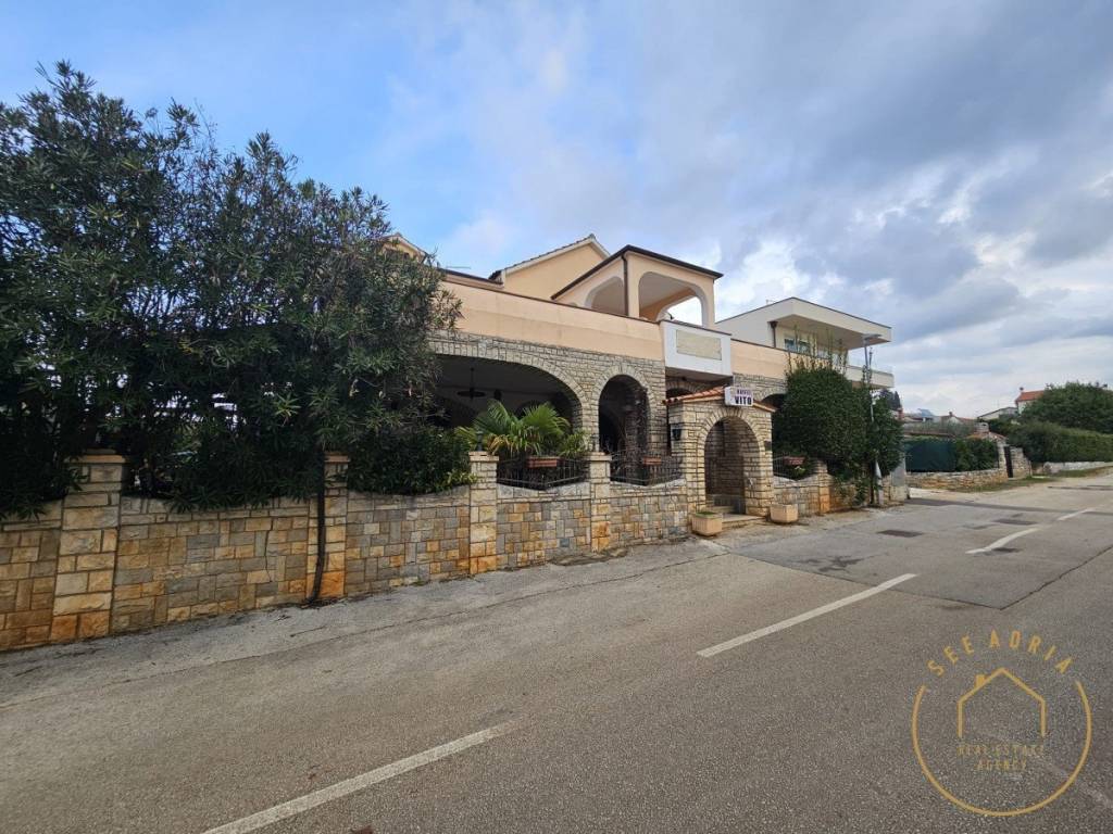 The building is a self-contained building where the ground floor has a restaurant-type hospitality facility with a main restaurant hall and a small hall, a kitchen with accompanying rooms, separate sanitary facilities for male and female guests, and a bar area. The outdoor open terrace is arranged for serving guests in the summer months with an uncovered and covered part. On the first floor, there is a larger residential unit, completely finished except for the open terraces, where only waterproofing has been installed.