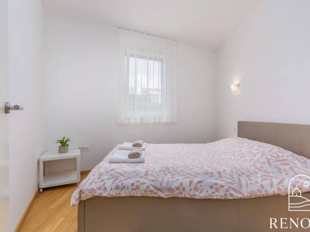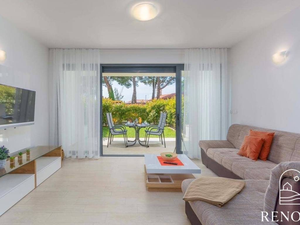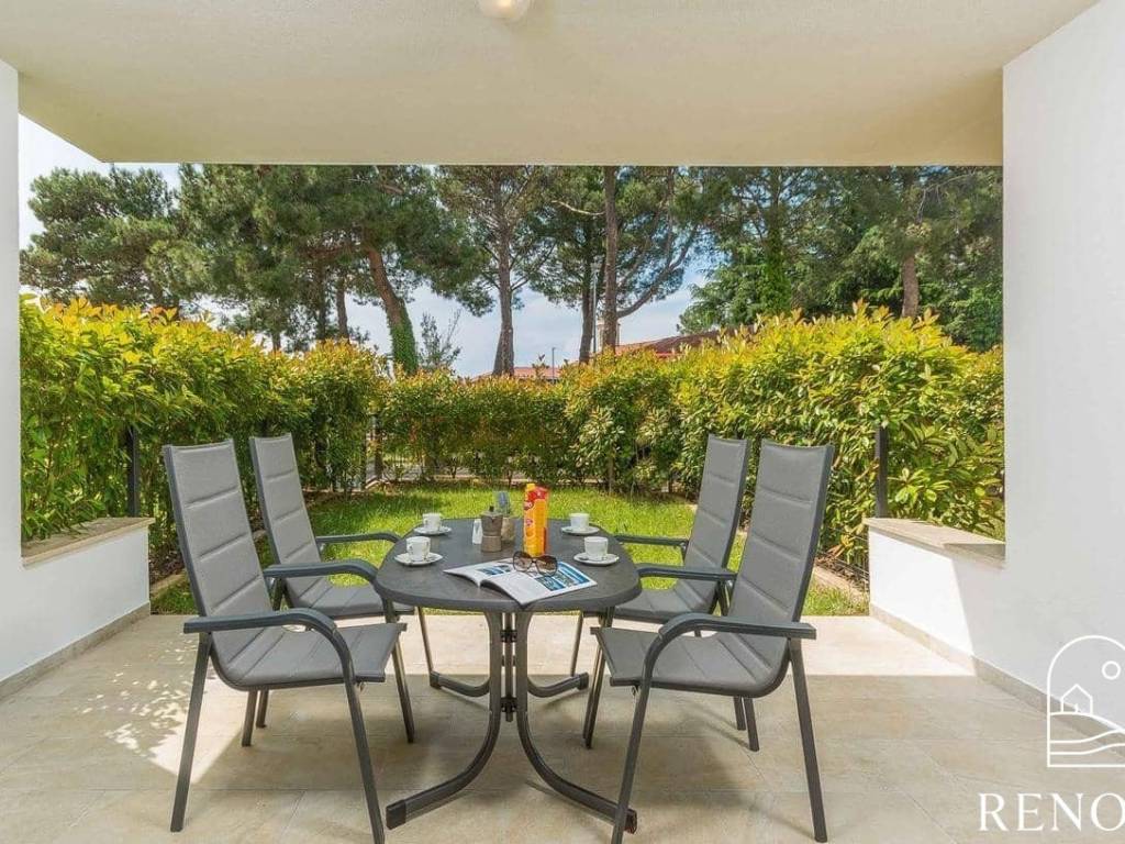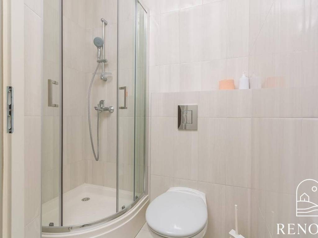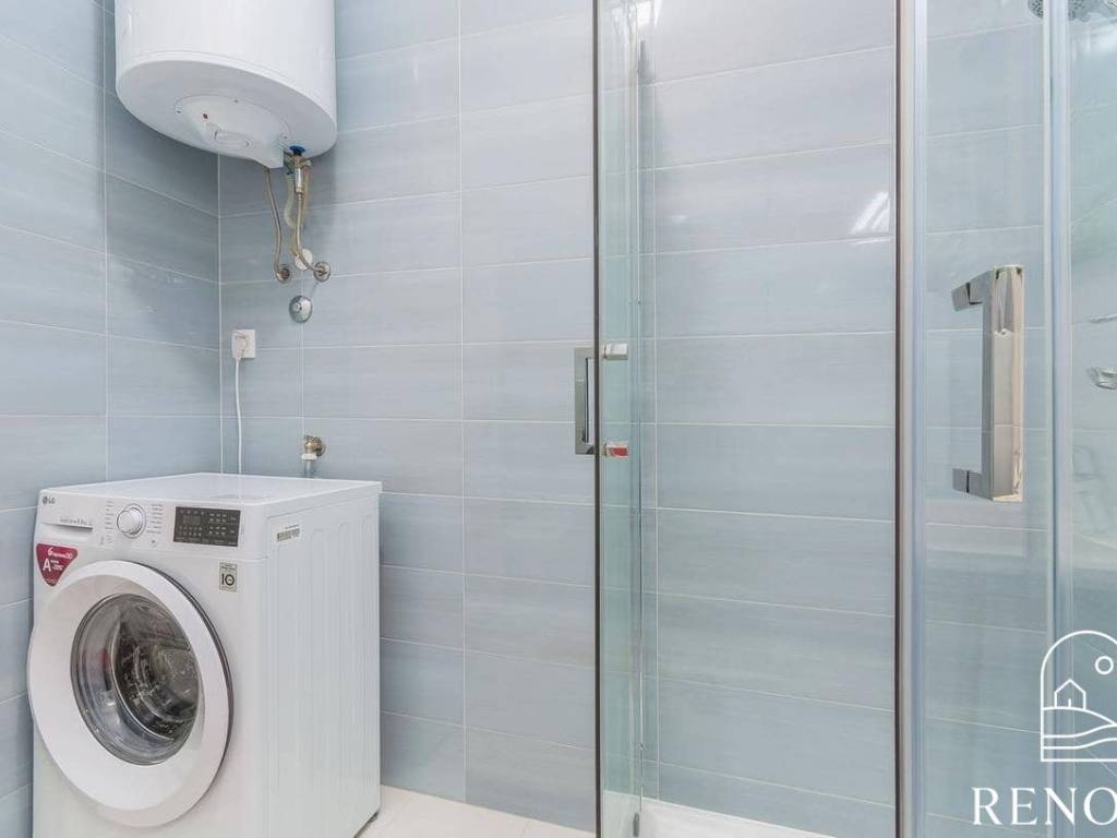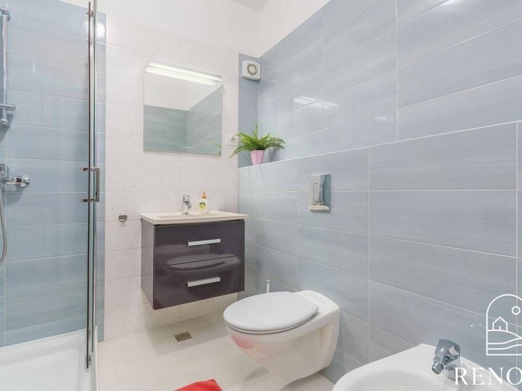 An apartment for sale in a sought-after location with an area of 82.13 m2. It consists of an entrance hall, 2 bedrooms, 2 bathrooms, "open space" living room with kitchen and dining room from which opens onto a covered terrace and a small garden. The apartment is sold fully furnished and has 1 parking space
