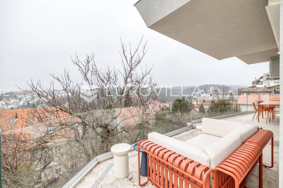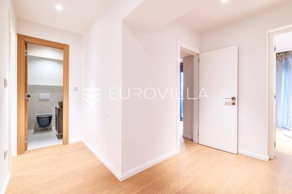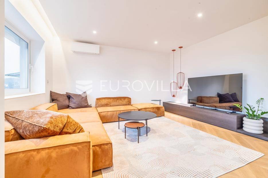 Zagreb, Hercegovačka ulica, luksuzan četverosoban stan u potpuno novoj urbanoj vili sa samo 4 stana. Stan je zatvorene površine 134.16 m2, s parkingom te ogromnom terasom i balkonima, što čini ukupno 181.88 m2. Sastoji od prostranog ulaznog hodnika, gostinjskog toaleta, prekrasnog velikog dnevnog boravka s kaminom te izlazom na terasu, kuhinje s blagovaonicom, dvije kupaonice, te tri spavaće sobe. Stan je opremljen vrhunskim dizajnerskim namještajem, podnim grijanjem, kompletno svim kućanskim aparatima, klima uređajima, trostrukom alu-drvo stolarijom s komarnicima, video portafon... Stanu pripada jedno parkirno mjesto pogodno i za električna vozila. Jako dobra mikrolokacija, samo stotinjak metara od trgovine, par minuta hoda do Pantovčaka gdje je javni gradski prijevoz, škola, vrtić, crkva,Britanski trg.... Iznajmljuje se isključivo dugoročno. Sve dodatne informacije na upit.