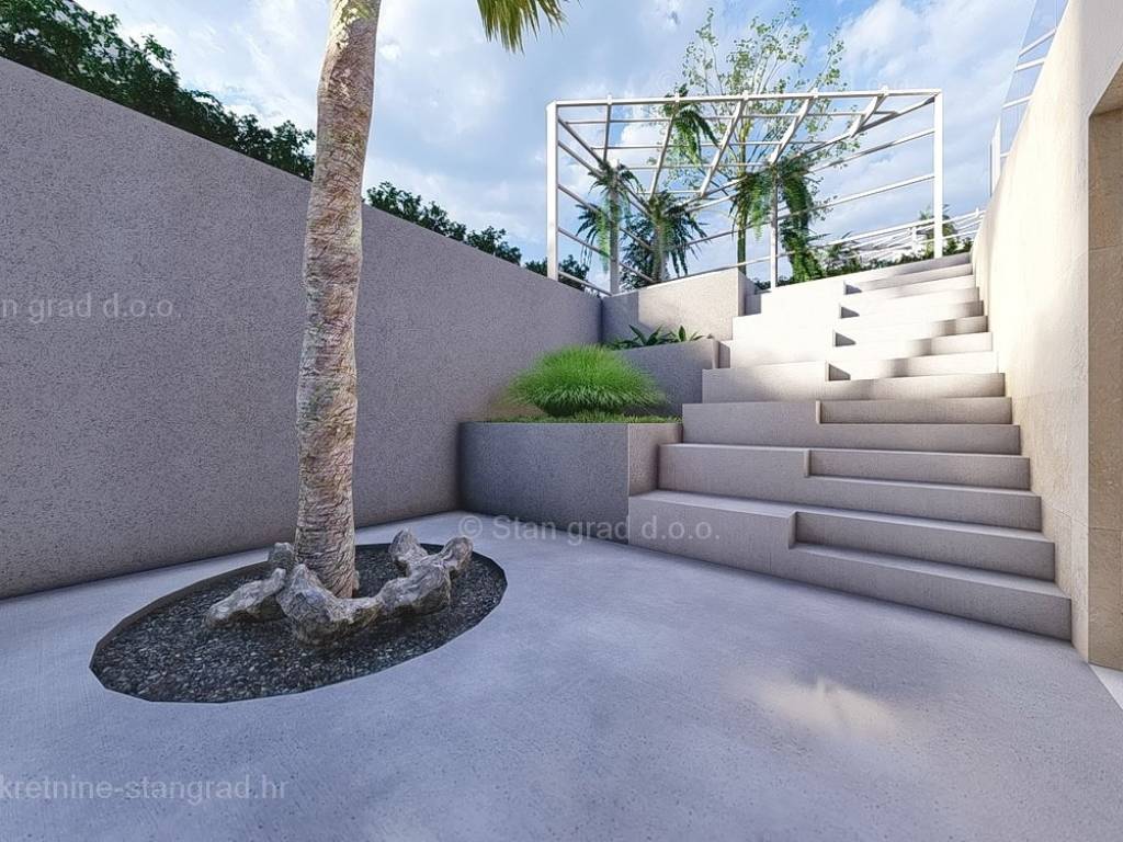 As part of the Kvarner real estate offer, the Stan Grad Immobilien agency is selling a designer-designed and modernly built villa in the northern Adriatic Mediterranean region, the island of Krk. This property is positioned on the highest point of the coastal town of Malinska with an enchanting view of the sea. Looking at the structure, this is a detached two-story villa that is the perfect choice for anyone looking for a luxurious vacation with privacy. The attractive building consists of a total of 2 floors on a plot of 623 m2. On the ground floor there are two luxuriously equipped master bedrooms with private bathrooms and access to the terrace. Also on the ground floor there is a social area that includes a gym, a children's playroom, a spa area with a Finnish sauna. Additional rooms are the engine room and laundry room, as well as an outdoor toilet. The staircase leads to the first floor of this impressive building, where there is an open concept kitchen and dining room and a spacious living room surrounded by glass walls that offer a beautiful open view of the sea. There is also an additional toilet and two covered terraces on the first floor. The larger terrace is connected by an external staircase to the pool on the ground floor. The added value of this entire facility is given by the meticulously designed garden with a swimming pool and sun deck with several specially arranged rest areas and a grill area. The villa is located within a unique resort consisting of 5 villas, and it is important to note that the owners will have a tennis court, basketball court, mini golf court, open gym, children's park and bocce ball court. The building and the garden of the property in question allow for the parking of several vehicles. The house in question is owned by a physical obligation and upon transfer of ownership is subject to the calculation of real estate transfer tax in the amount of 3%. The real estate seller guarantees a quick transfer of ownership rights and proper ownership and technical documentation. We cordially await you at the address of the office on the island of Krk. If you decide for us, the expert team of the Stan Grad Immobilien brokerage office will be happy to help you with the transfer of property ownership and the utility bill to your name.