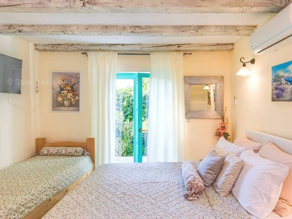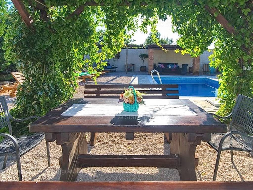 A very valuable and expensively built holiday home on the famous and attractive Adriatic tourist area, the island of Krk, is for sale at our agency in Kvarner. This house is positioned in a quiet location near the coastal town of Malinska, not too far from the sea. From a structural point of view, this is a single-story house with an auxiliary building of approx. 50 m2. The impeccably executed property consists of a total of 2 floors. The total area of ​​this house is 180 m2. On the ground floor, this area includes a living room and a kitchen with a dining room, a toilet, a bedroom equipped with a bathroom with a jacuzzi, a storage room and an exit to a covered terrace of 50 m2. A spiral staircase made of wrought iron leads to the first floor, where there is a children's room and a master bedroom with its own bathroom. A rich set of devices of the latest generation has been installed in the exceptionally well-maintained and luxuriously furnished interior of the subject property. The added value of this entire facility is given by the garden with a swimming pool and sun deck. The house also has a tavern of 60 m2 and several covered terraces ideal for socializing. The auxiliary facility consists of a kitchen, dining room, gallery, bathroom, tavern and toilet. The spacious garden of the described property is equipped with comfortable parking for several vehicles. In addition to the above, it is not negligible to say that the house has a beautiful view of the forest and natural vegetation. The house in question is owned by a physical obligation and upon transfer of ownership is subject to the calculation of real estate transfer tax in the amount of 3%. The real estate seller guarantees a quick transfer of ownership rights and proper ownership and technical documentation. Get in touch and we will be happy to receive you in our office on the island of Krk. If you decide for us, the expert team of the Stan Grad Immobilien brokerage office will be happy to help you with the transfer of property ownership and the utility bill to your name.