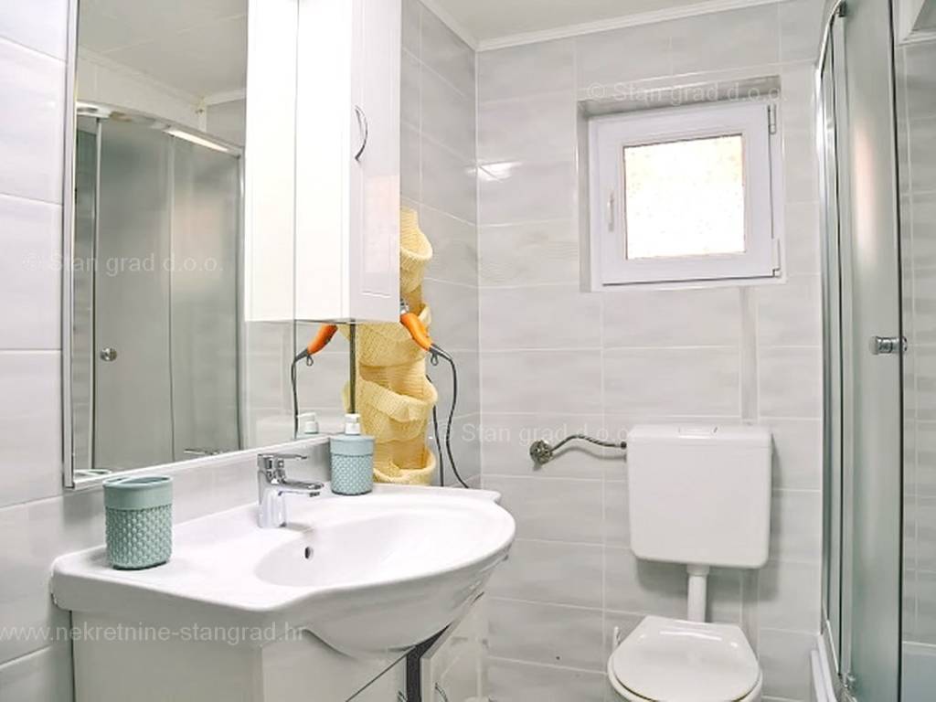 Among the excellent real estate offered by our agency in the northern Adriatic, a modern house for tourism built on the sought-after Croatian and Kvarner coastal region, the island of Krk, stands out. The prominent house is located in a beautiful location; not too far from the center of the famous town of Dobrinje. Structurally speaking, this is a single-story house. The quality-built house consists of a total of 2 useful floors in terms of space and height. The house contains two separate apartments. The property covers a total area of 160 m2. Both apartments consist of an entrance area, a bathroom, a kitchen with a dining room, a living room and two bedrooms with access to the loggia. The property with a preserved interior is equipped with a set of very good technical equipment and quality pieces of furniture. The added value of this entire building is given by the garden with a swimming pool and a sunbathing area. The spacious garden of the described property is equipped with comfortable parking for several vehicles. In addition to the above, it should be noted that the house has a beautiful view of this seaside place. This real estate is owned by a natural person and in the name of its transfer, the buyer of the house is obliged to pay real estate sales tax in the amount of 3%. The owner of the house guarantees a quick transfer of the right to dispose of the property to the buyer. Our team is waiting for you at the prominent address of the company's Kvarner office on the island of Krk. If you decide to buy a house with us, our expert team, in addition to finding the property and presenting its legal status, will also help you with the transfer of ownership rights and utility bills.