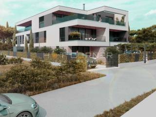 The apartment will be equipped with PVC carpentry in anthracite color with mosquito nets, a liftable sliding wall in the living room with electric shutters, burglar-proof entrance door, underfloor heating in the bathroom, laminate installed in the rooms and larger format ceramics in the rest of the apartment, walk-in shower in the bathrooms, and air conditioning in the living room.