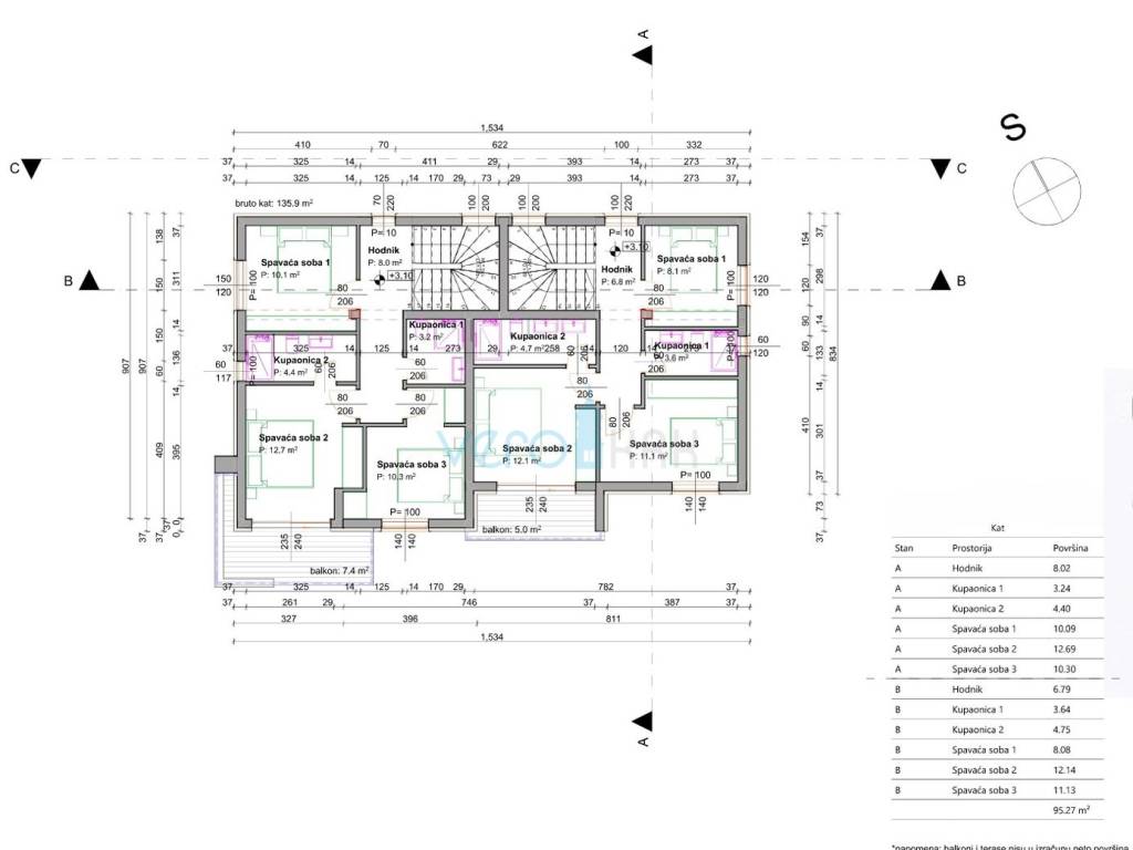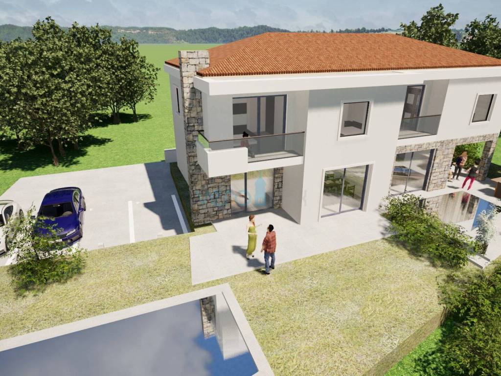 Malinska, island of Krk, center, an attractive semi-detached house with modern design is on offer. The location, 600 m from the sea and the beach, is a special advantage because it is a quiet residential area, yet easily accessible from the center. The house, with a total area of 122.81 m2, is arranged on the ground floor and first floor. On the ground floor there is an "open space" living area with kitchen, dining room, storage room, and bathroom. In front of this space is a covered terrace. On the first floor there are three bedrooms, one of which has its own bathroom, while the other two bedrooms share a second bathroom. The master bedroom has access to a covered terrace of 5 m2 with a sea view. On the 110 m2 plot, there is the possibility to build a 30 m2 swimming pool with a sunbathing area and a machine room. Construction will take place during 2025/2026, and high-quality materials and equipment are planned (multi-split air conditioning, underfloor heating in bathrooms, hallway, and ground floor, parquet floors in bedrooms, Italian ceramics, PVC joinery, electric roller shutter lifts, security doors, mosquito nets, 10 cm insulation, and preparation for rooftop solar panels, alarm and video surveillance). On the landscaped plot, there is parking and maneuvering space for two cars (25 m2). One parking space will have preparation for an electric car charging station. An excellent opportunity to invest in a brand new home by the sea.