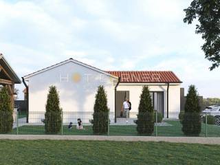 In a small village, 3 km from the town of Barban, and 8 km from the first beaches, a smaller single-story house is for sale, essentially half of a duplex, with a living area of 70 m2, two bedrooms, 2 bathrooms, a spacious open-space living room with a kitchen and dining area. Equipment: 3 air conditioners, fireplace, underfloor heating throughout the house.