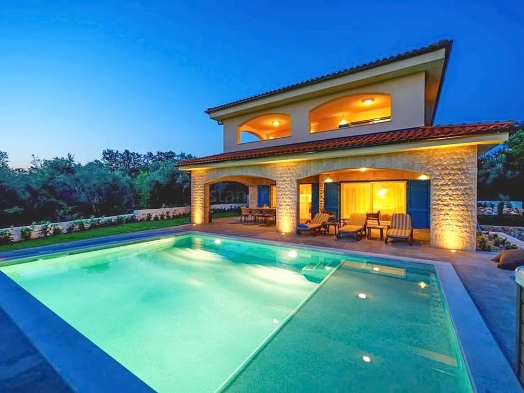 As part of the attractive Kvarner real estate offer by the agency Stan Grad Immobilien, a luxurious, designer-designed and modernly built tourist house is for sale in the Mediterranean setting of the northern Adriatic, on the island of Krk. This exceptional property is located in a highly sought-after area near the very center of Malinska, one of the island’s most popular tourist destinations. It is a detached, multi-level house spread over three floors, offering a high level of comfort and privacy.