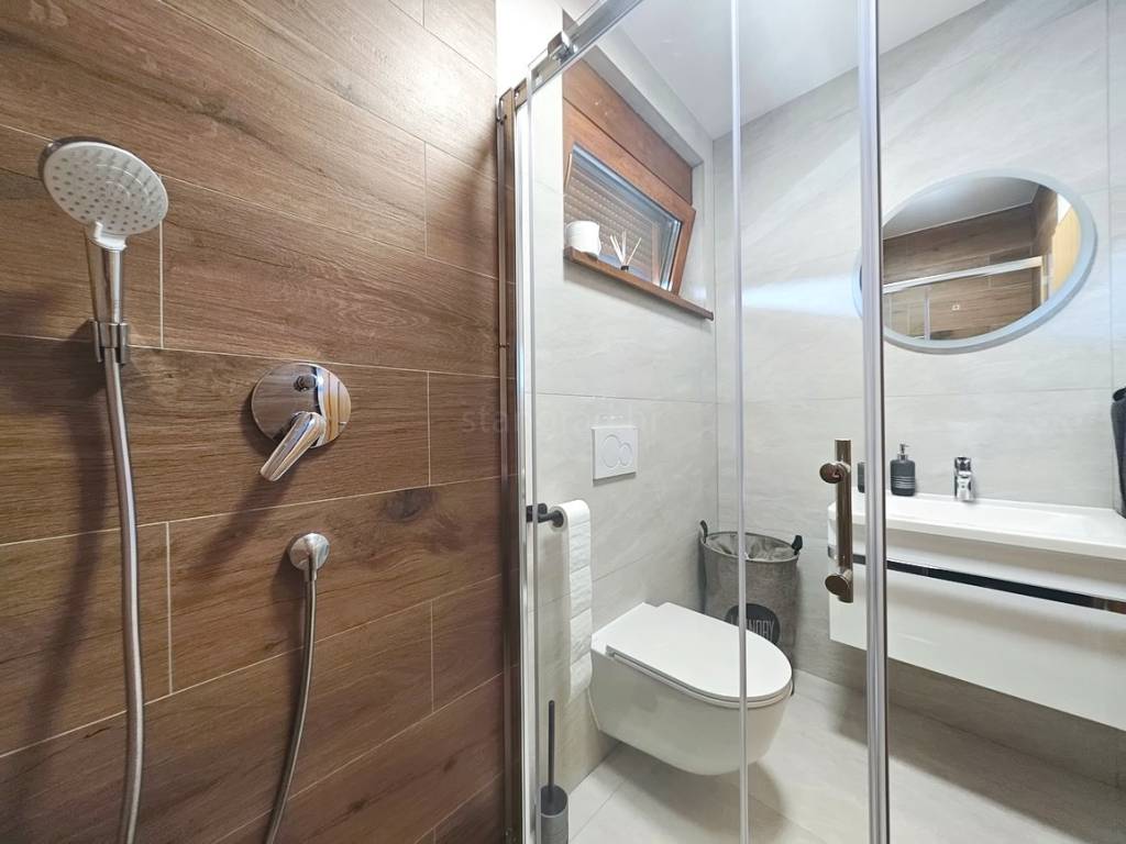 The interior of the villa is fully equipped with state-of-the-art appliances and custom-designed furniture, highlighting the modern and sophisticated character of the space. A particular asset of this property is the carefully landscaped garden with a spacious sun deck and a swimming pool filled with heated saltwater, equipped with a massage system and counter-current swimming. The pool is finished with a light-colored waterproof aggregate that enhances the special color effect of the water and further emphasizes the luxury of the estate. The property also provides garage parking for two vehicles as well as additional outdoor parking spaces on the grounds.