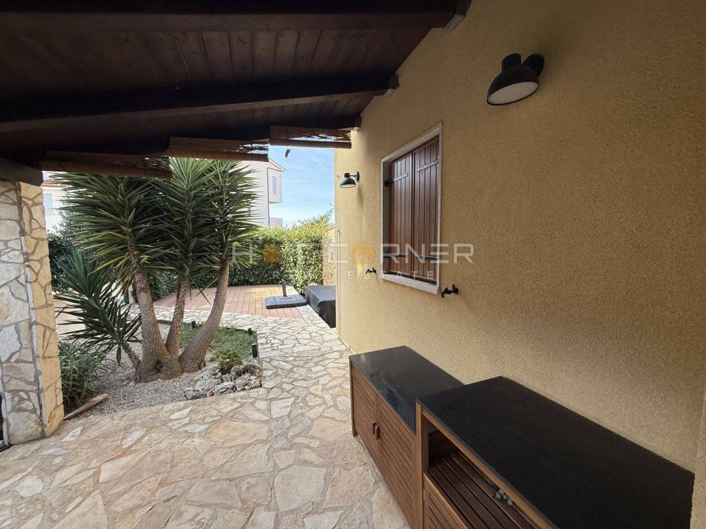Banjole, just 150 m from the sea and 500 m from the nearest developed beach, a luxurious ground-floor apartment of 51 m² is for sale. It includes a beautiful southwest-facing fenced garden of 110 m² with a covered terrace, jacuzzi, and outdoor shower.