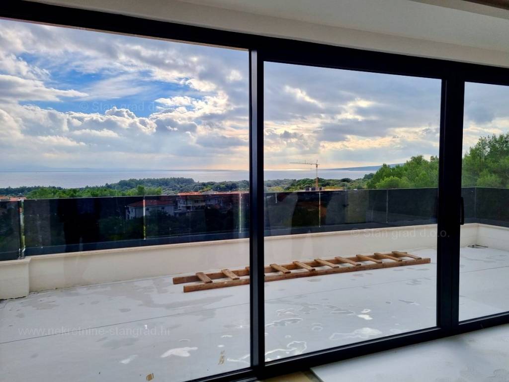 The agency Stan Grad Immobilien offers you a super luxurious apartment in the region of the Island of Krk. The attractive property is located in the town of Krk in a prime location not far from the sea. Inside the luxuriously built building there is an attractive apartment on the 2nd floor with a total area of 118 m2. It consists of an entrance hall, bathroom, spacious living room, dining room and kitchen that form a whole, three bedrooms, one of which has its own bathroom and a covered terrace of 35 m2. As part of the ownership of the property, the new owner of the apartment will have one parking space. In addition to the above, this apartment has an open view of the sea. The apartment is equipped with quality equipment, electric underfloor heating, high-quality ceramics and video surveillance. This property is in the VAT system, which means that the buyer is not obliged to pay tax on the displayed price. The seller guarantees proper documents and prompt transfer of ownership of the apartment to the buyer. Stan Grad Immobilien office agents will help you with registration and all other administrative tasks.