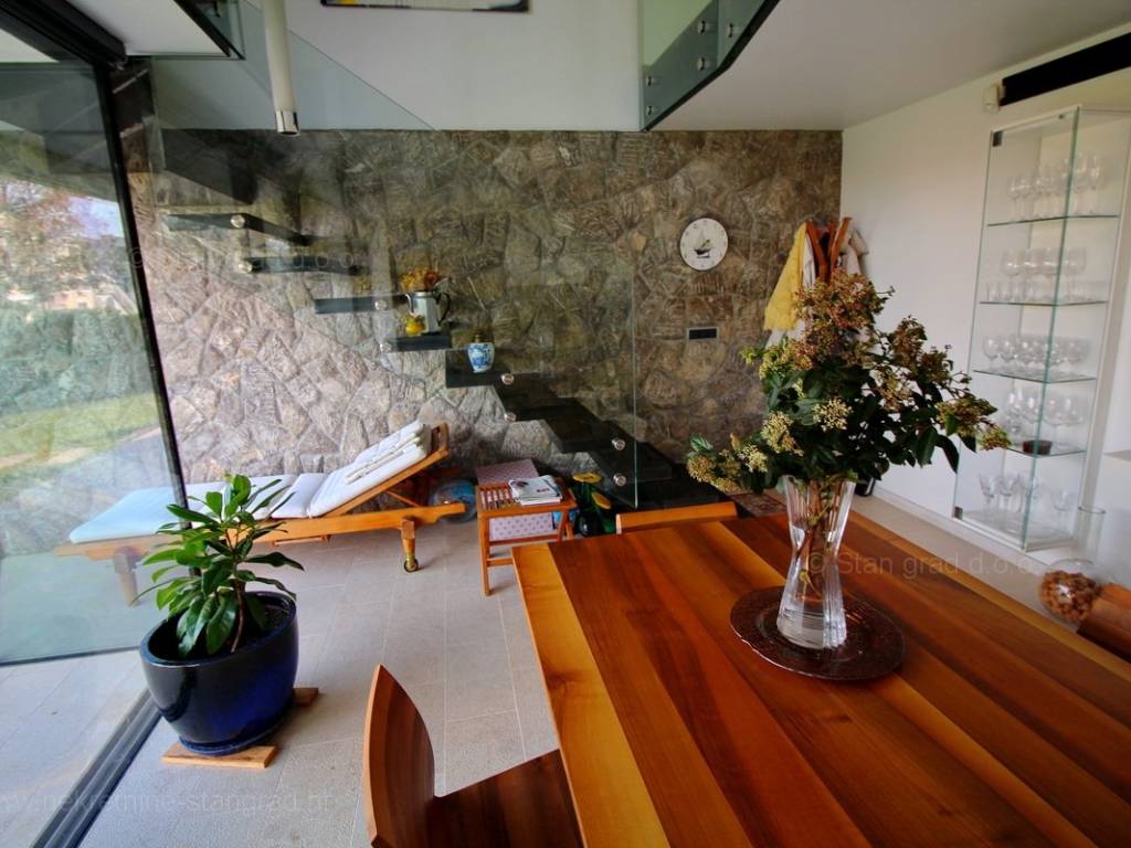 In the real estate offer of Stan Grad Immobilien, there is a highly attractive apartment located on the island of Krk, perfect for tourist stays and relaxing holidays on the Adriatic. This outstanding property is situated in an elite and exceptionally quiet part of Malinska, right by the sea and near the center of this charming coastal town. In terms of property type, this is a spacious duplex apartment that occupies two full floors of the building.