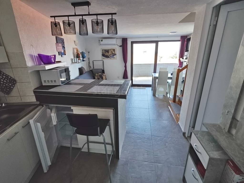 In the property selection of the Stan Grad Immobilien agency on the island of Krk, there is a very attractive apartment that is ideal for a tourist stay and vacation on the Adriatic. The apartment is located in a charming settlement in a highly sought-after location, in close proximity to the sea and the center of Malinska. It is a two-level apartment with internal stairs, with the entrance situated on the lower floor.