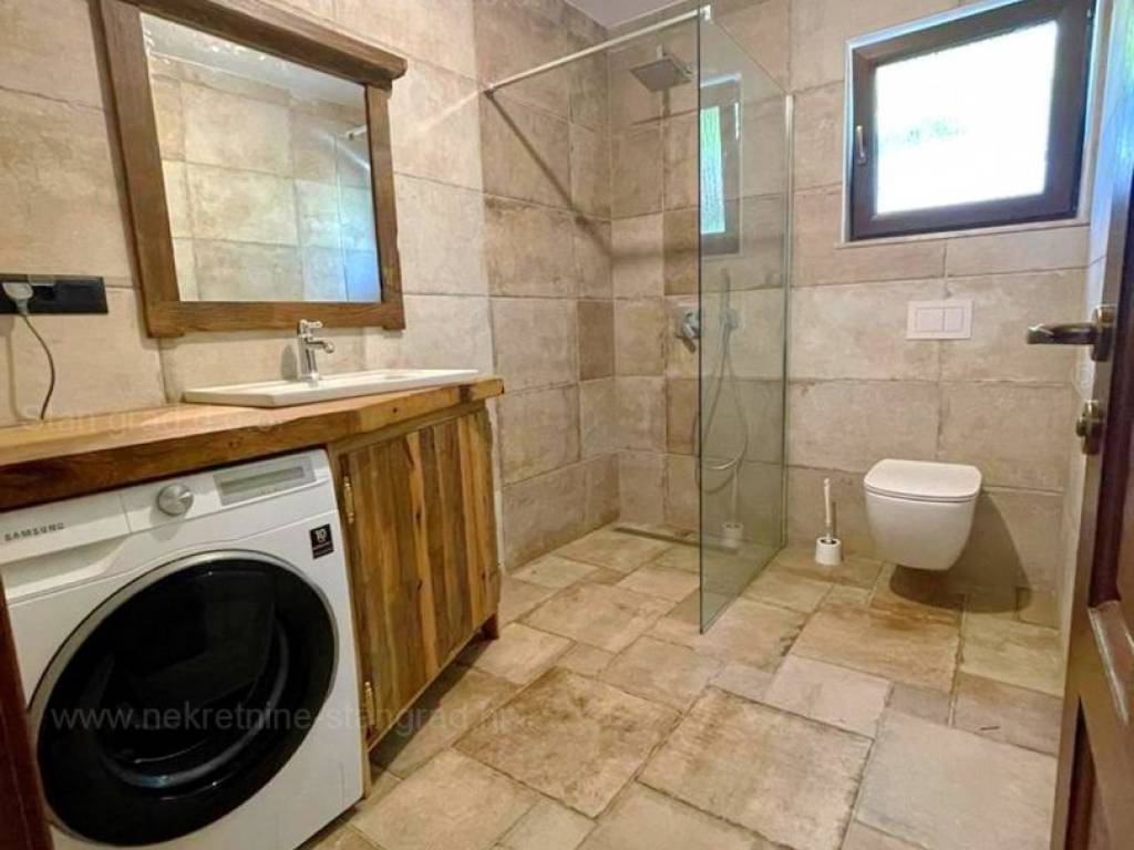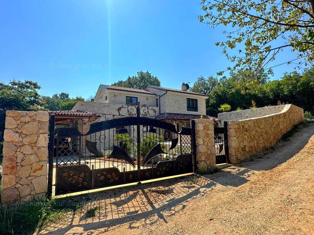 From the excellent offer of real estate in the Stan Grad Immobilien agency in the developed and advanced Kvarner, a very beautiful house in the high-quality and desirable coastal Adriatic destination, the island of Krk, stands out. This exceptional house is located in a quiet location in the immediate vicinity of Soline and the sea. Structurally speaking, this is a single-story house with an outbuilding. The extremely attractive building consists of a total of 2 floors. The house occupies a total area of ​​220 m2. On the mentioned surface there is a spacious living room with access to a covered terrace, a kitchen with a dining area and a bathroom on the ground floor. On the first floor of the house there are 3 bedrooms, two of which have their own bathroom and access to a terrace with a jacuzzi. The property is fully equipped with modern furniture and modern and high-quality technical equipment. Within the property there is a well-kept garden with a swimming pool, a sunbathing area, a grill area and a stone garden house with a sauna and an engine room for the pool. Several cars can be comfortably parked in the garden of the property. In addition to the above, it should be noted that the house has a beautiful view of this seaside place. This house is the property of a natural person and the transfer of its ownership is subject to real estate transfer tax in the amount of 3%. The seller of the house guarantees proper ownership documentation and a quick transfer of property ownership. Visit us and experience the feeling of satisfaction and security when buying real estate in Kvarner. In addition to the professional presentation of the natural and legal condition of the property, if you decide to buy, the Stan Grad Immobilien agency will be happy to assist you in the transfer of ownership of the property.