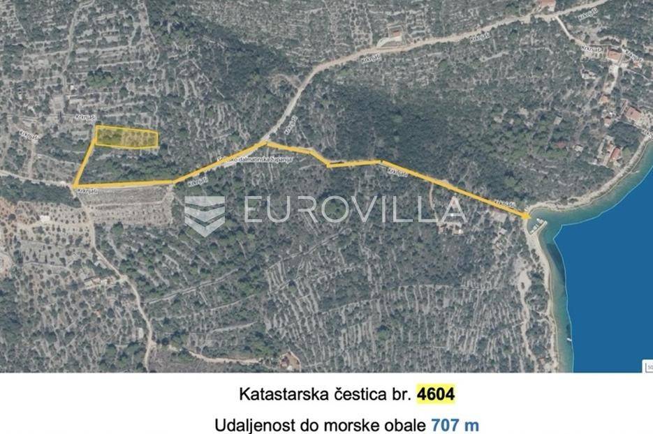 Otok Drvenik , poljoprivredno zemljište 1.900 m2 pravilnih dimenzija gotovo pravokutnog oblika (84 m x 22 m). Do parcele koja je drugi red od asfaltirane ceste 60 m vodi poljski puti u širini od 3 metra.Na parceli se nalazi nekoliko maslina a parcela je uređena i ograđena tradicionalnim kamenim suhozidom.S parcele se pruža pogled na more, udaljenost od mora 500 m te postoji mogućnost kupnje još dodatnih parcela za investiciju u ruralni Robinsonski turizam.Za sva ostale informacije stojimo Vam na raspolaganju